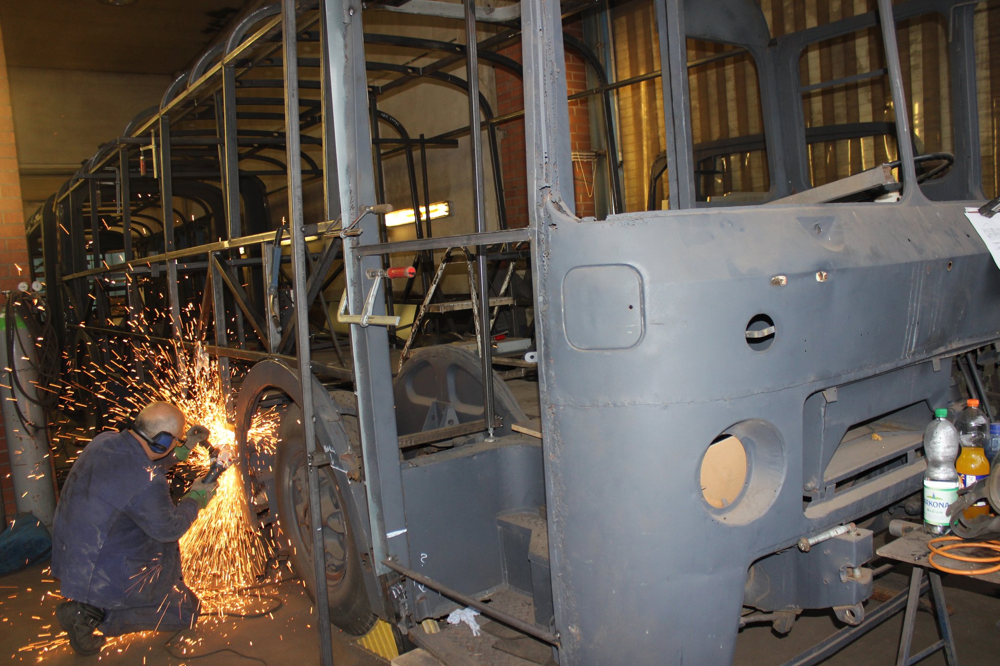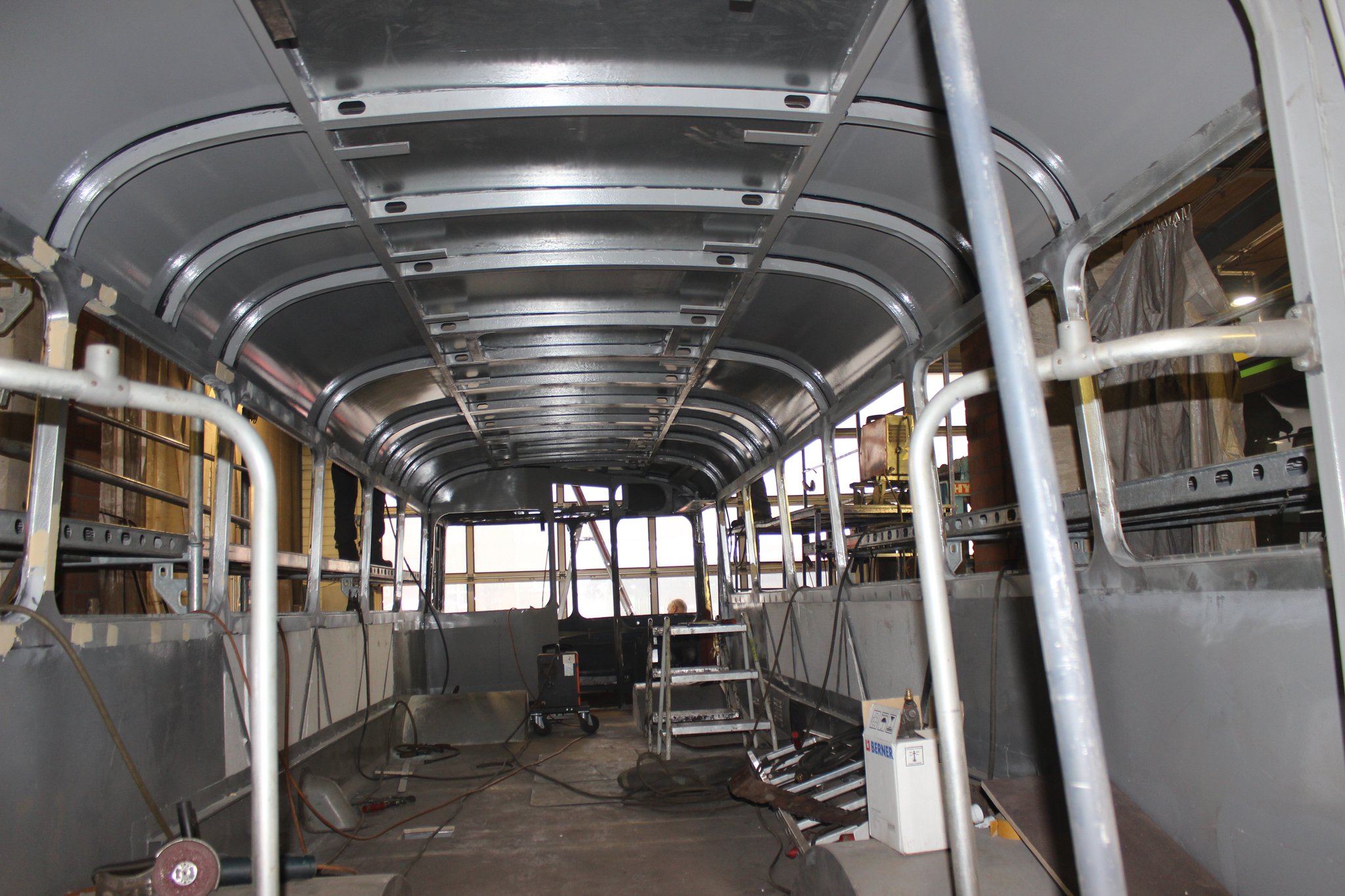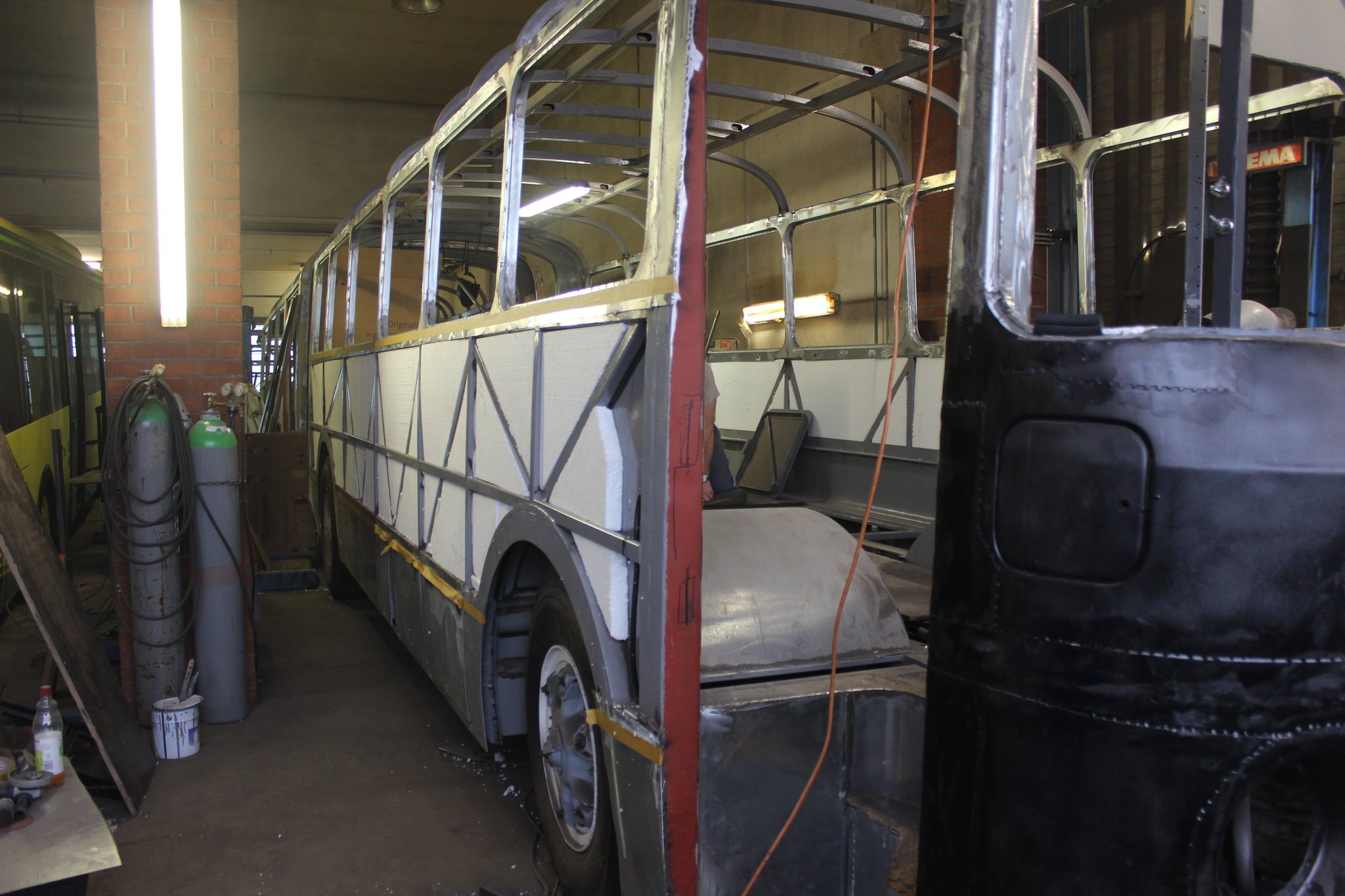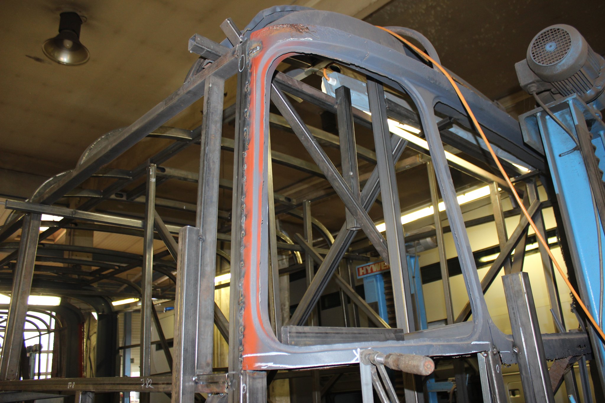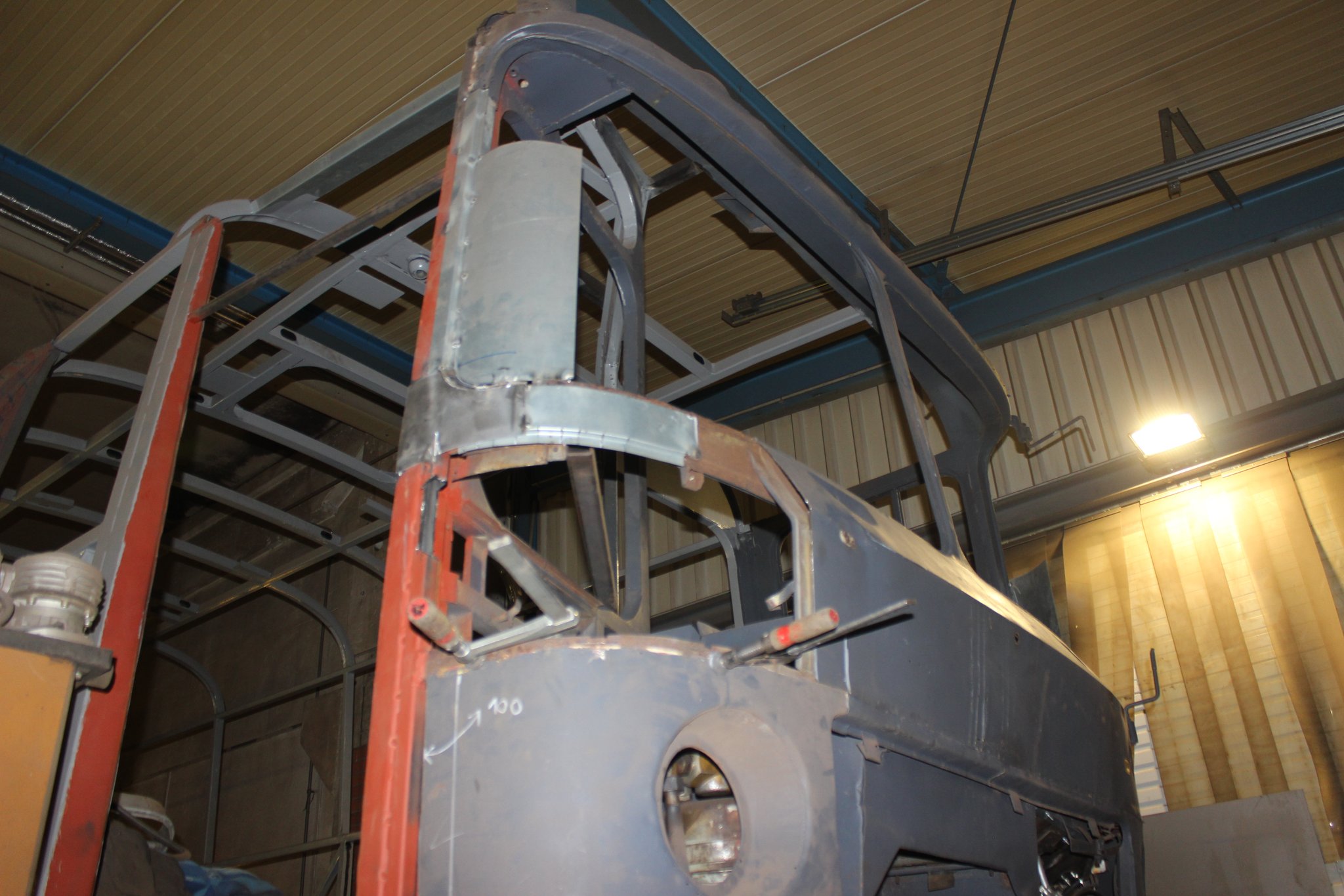 04.02.2022 - Einbau der Fußbodenplatten; Türaufnahme Tür 1 und 2; Neuanfertigung der Klappenstützen; Instandsetzung sowie Montage des Dachendblech mit Zielschildeinsatz; Instandsetzung des Fahrerfensters; Instandsetzung Stoßfänger vorn; Fahrzeugisolierung; neu angefertigte Scheibenaufnahmen einschweißen