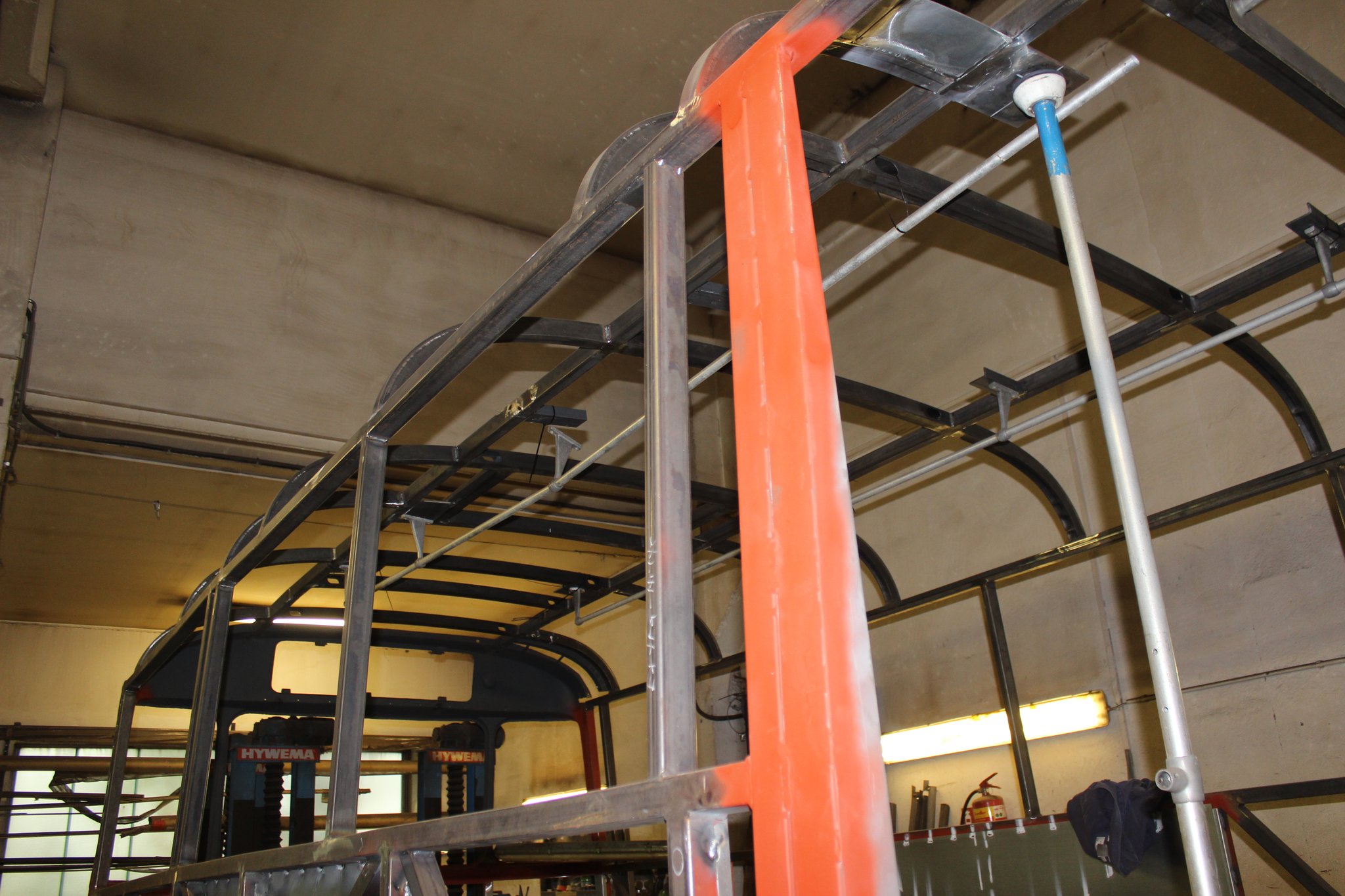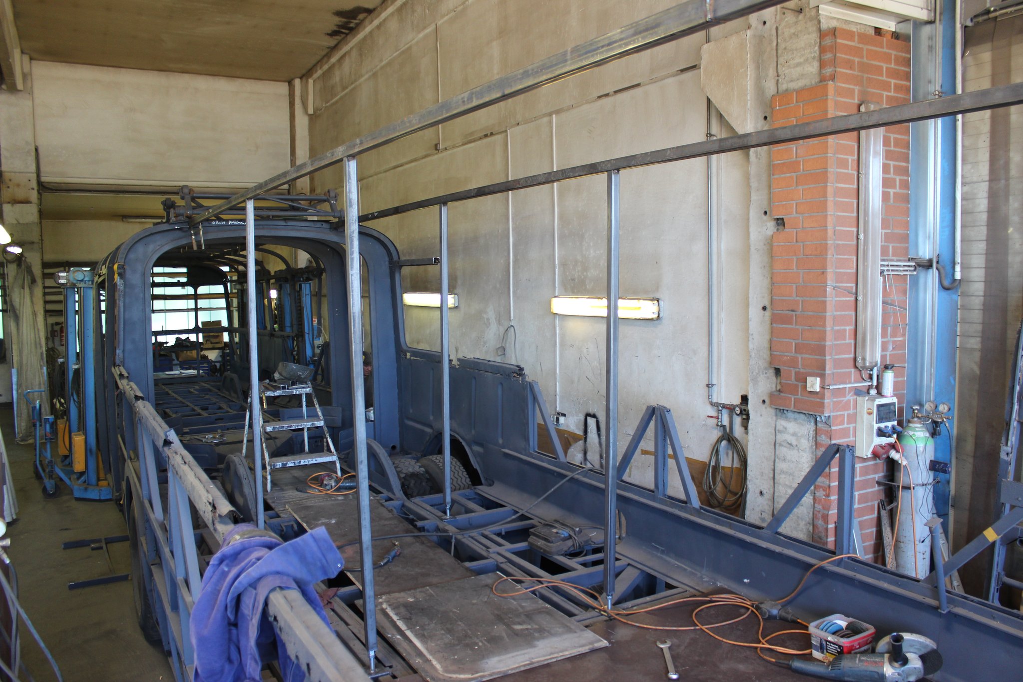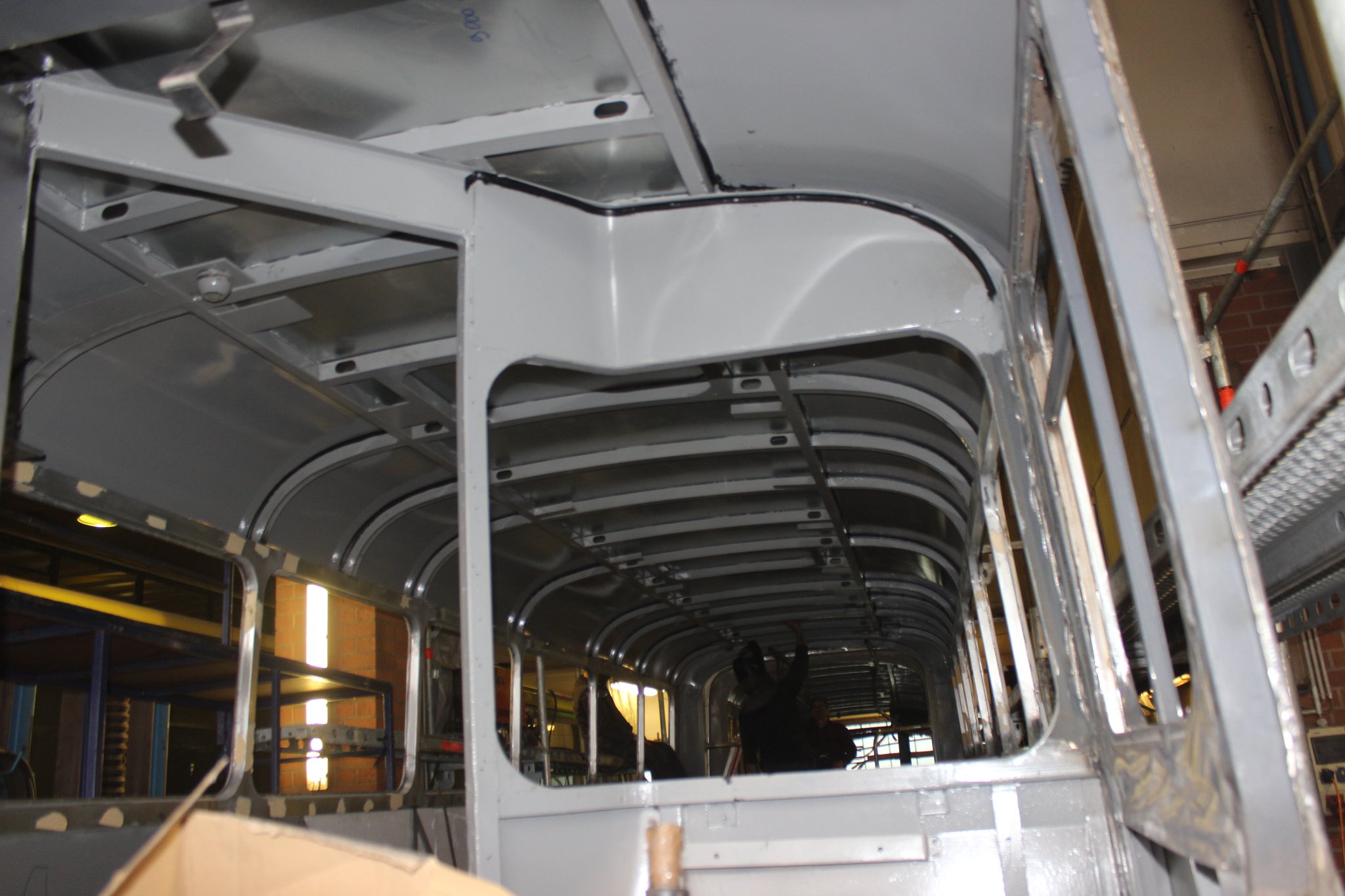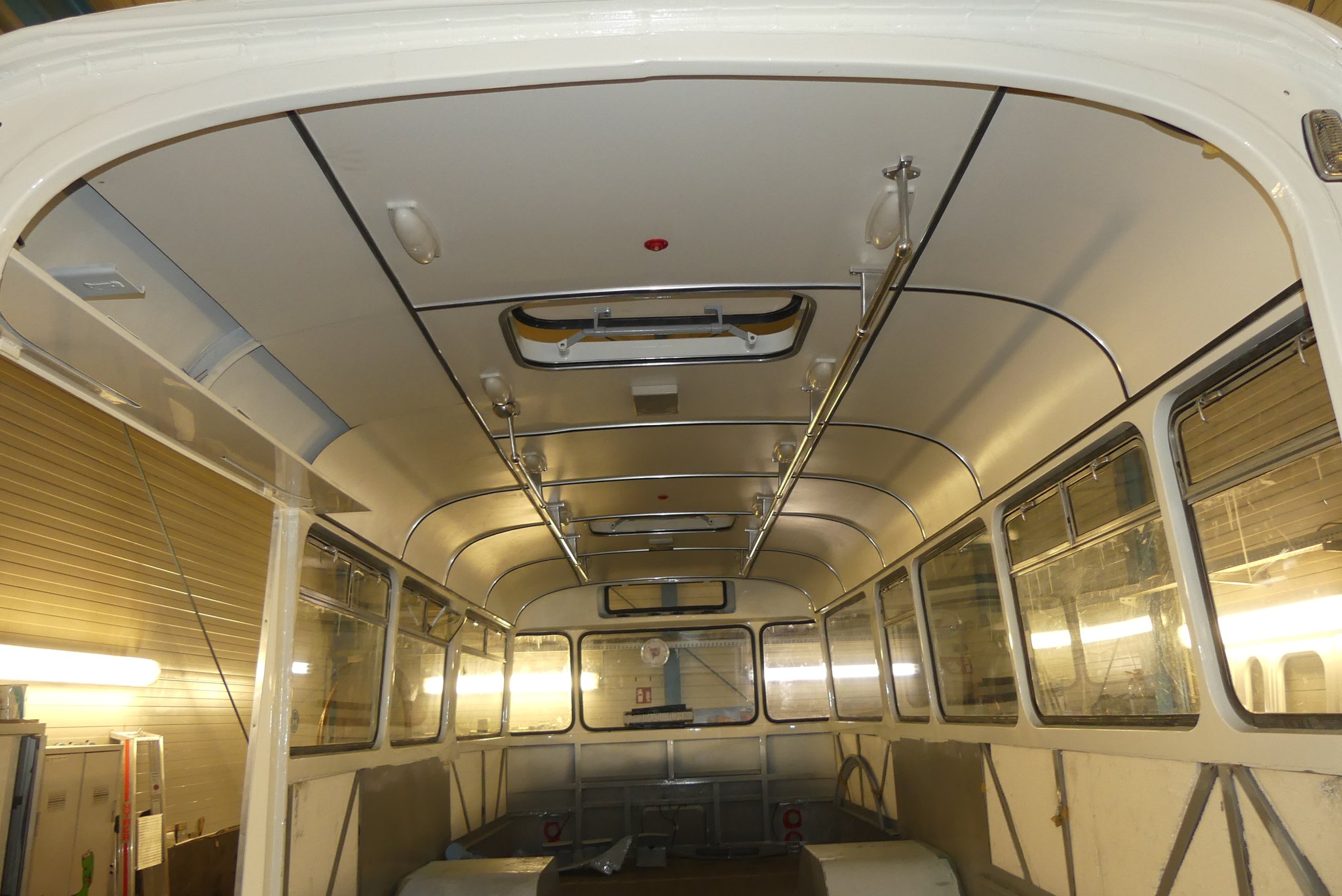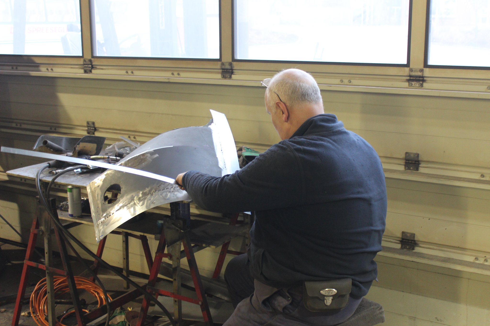 04.02.2022 - Einbau der Fußbodenplatten; Türaufnahme Tür 1 und 2; Neuanfertigung der Klappenstützen; Instandsetzung sowie Montage des Dachendblech mit Zielschildeinsatz; Instandsetzung des Fahrerfensters; Instandsetzung Stoßfänger vorn; Fahrzeugisolierung; neu angefertigte Scheibenaufnahmen einschweißen