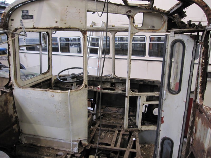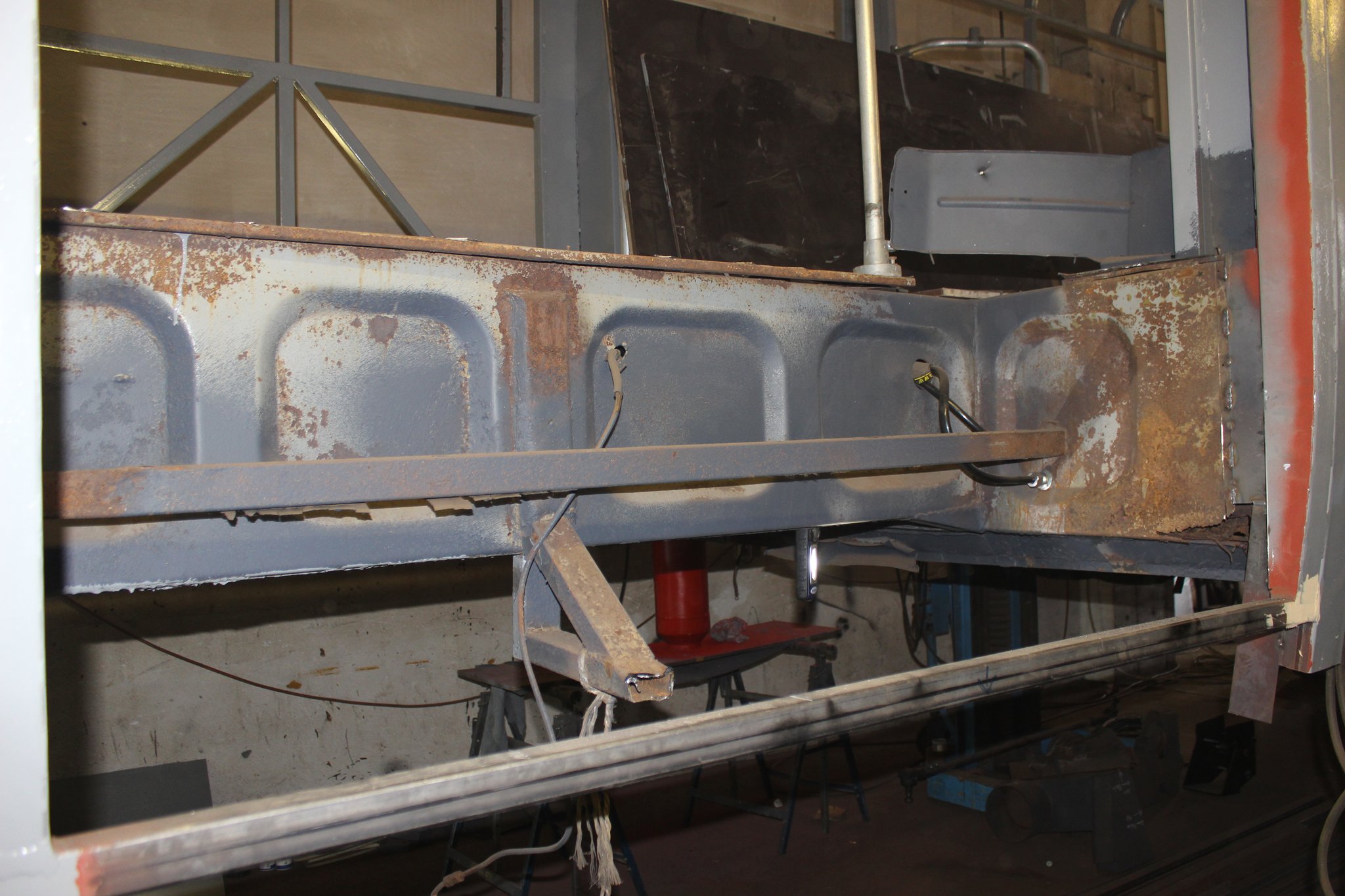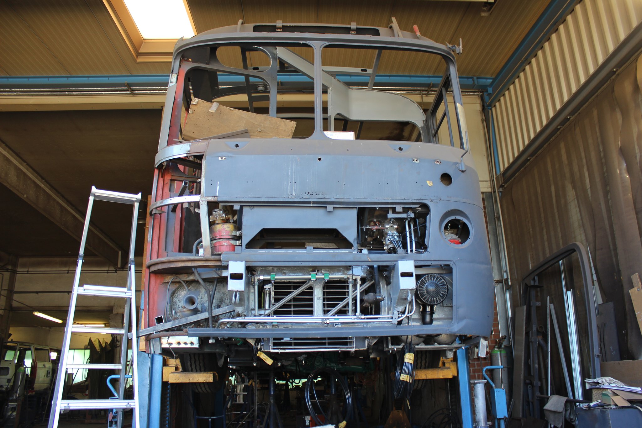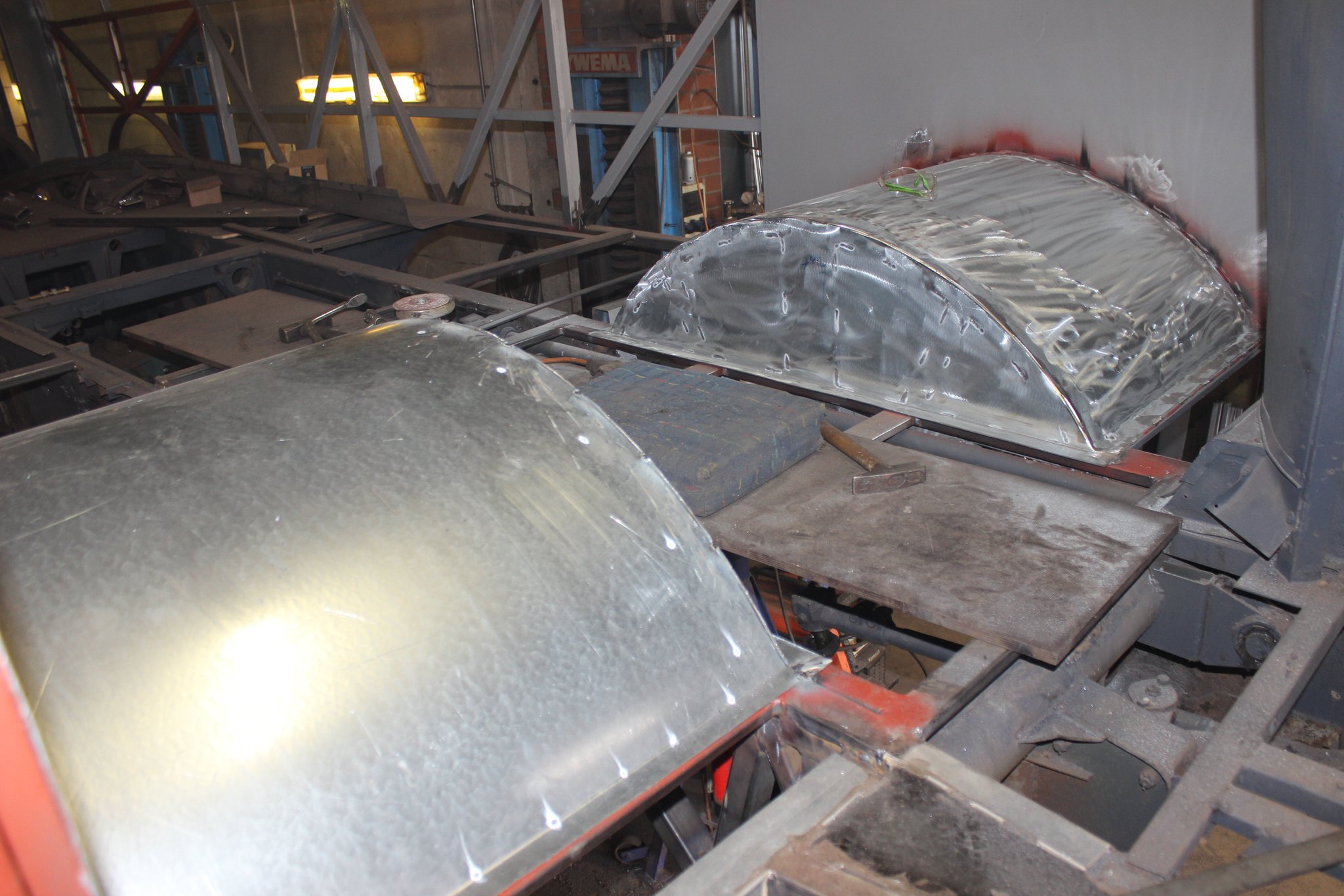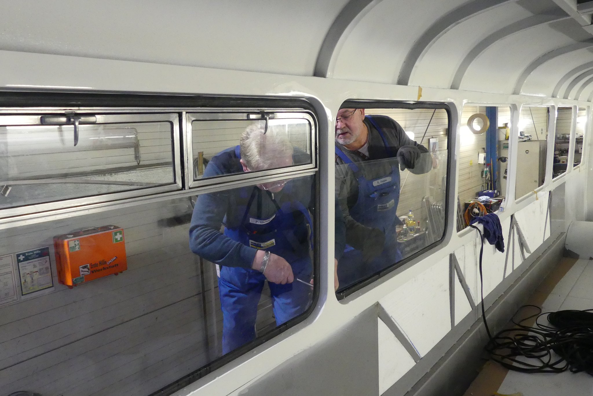 04.02.2022 - Einbau der Fußbodenplatten; Türaufnahme Tür 1 und 2; Neuanfertigung der Klappenstützen; Instandsetzung sowie Montage des Dachendblech mit Zielschildeinsatz; Instandsetzung des Fahrerfensters; Instandsetzung Stoßfänger vorn; Fahrzeugisolierung; neu angefertigte Scheibenaufnahmen einschweißen