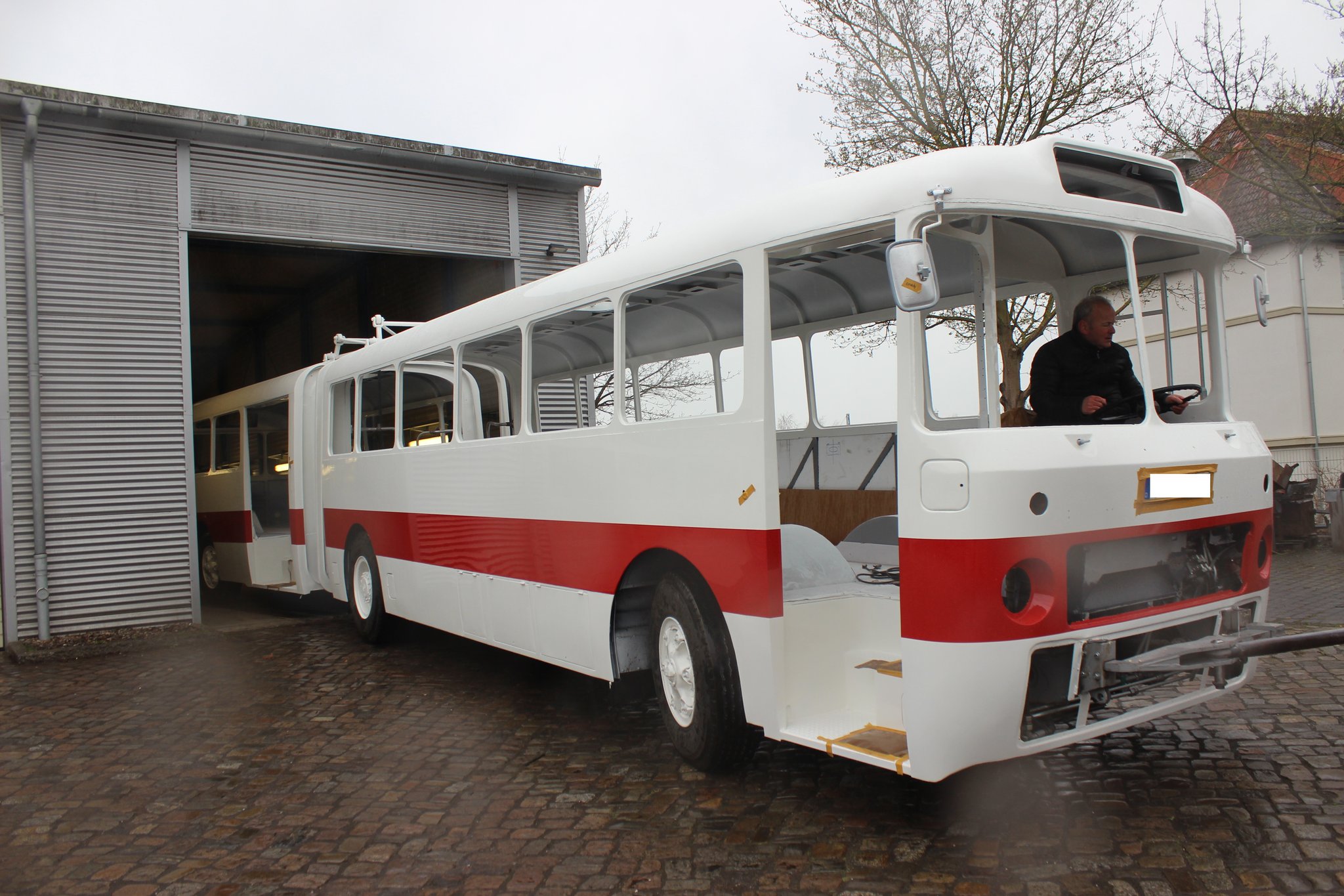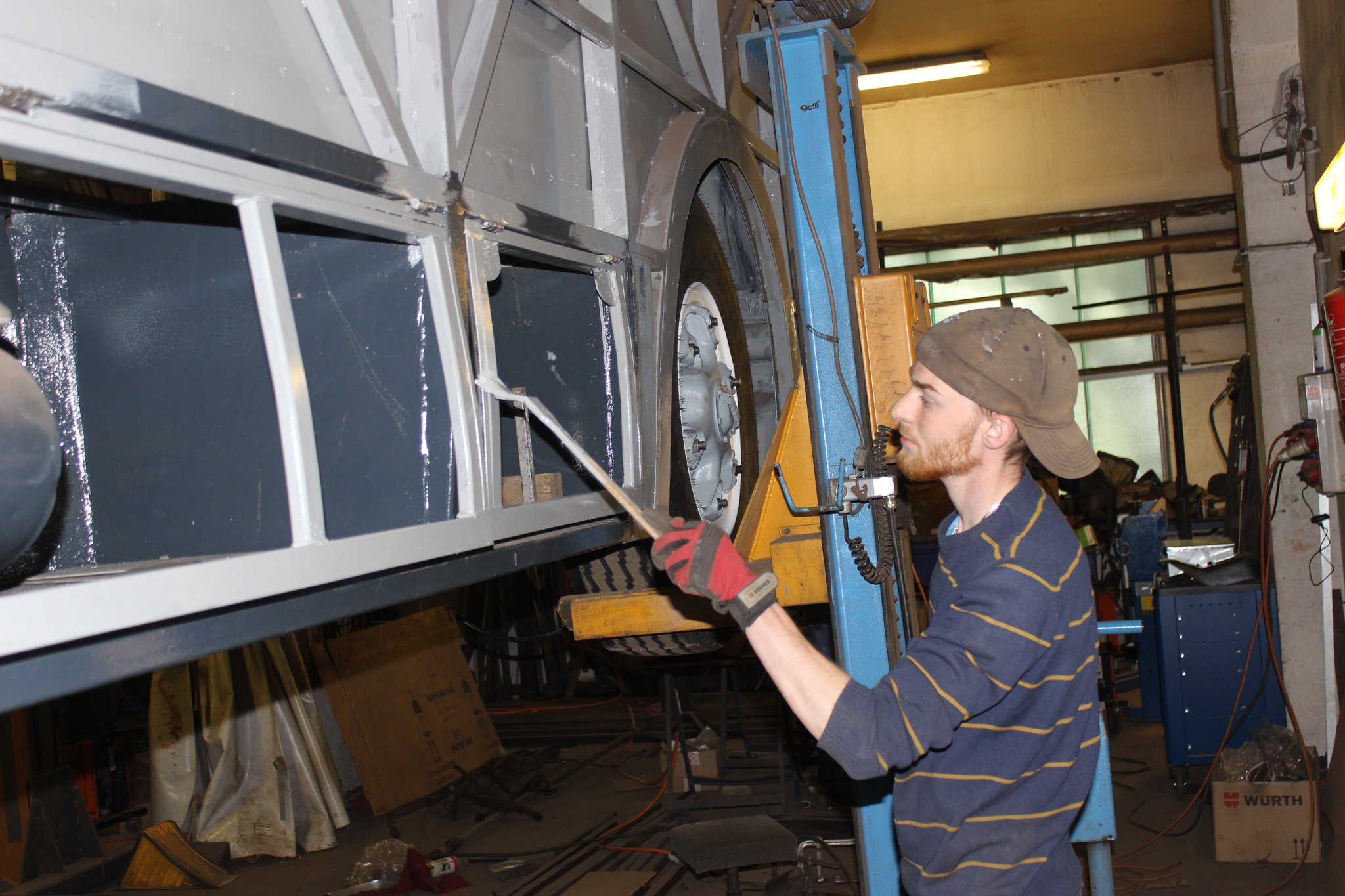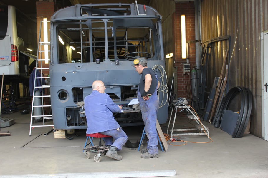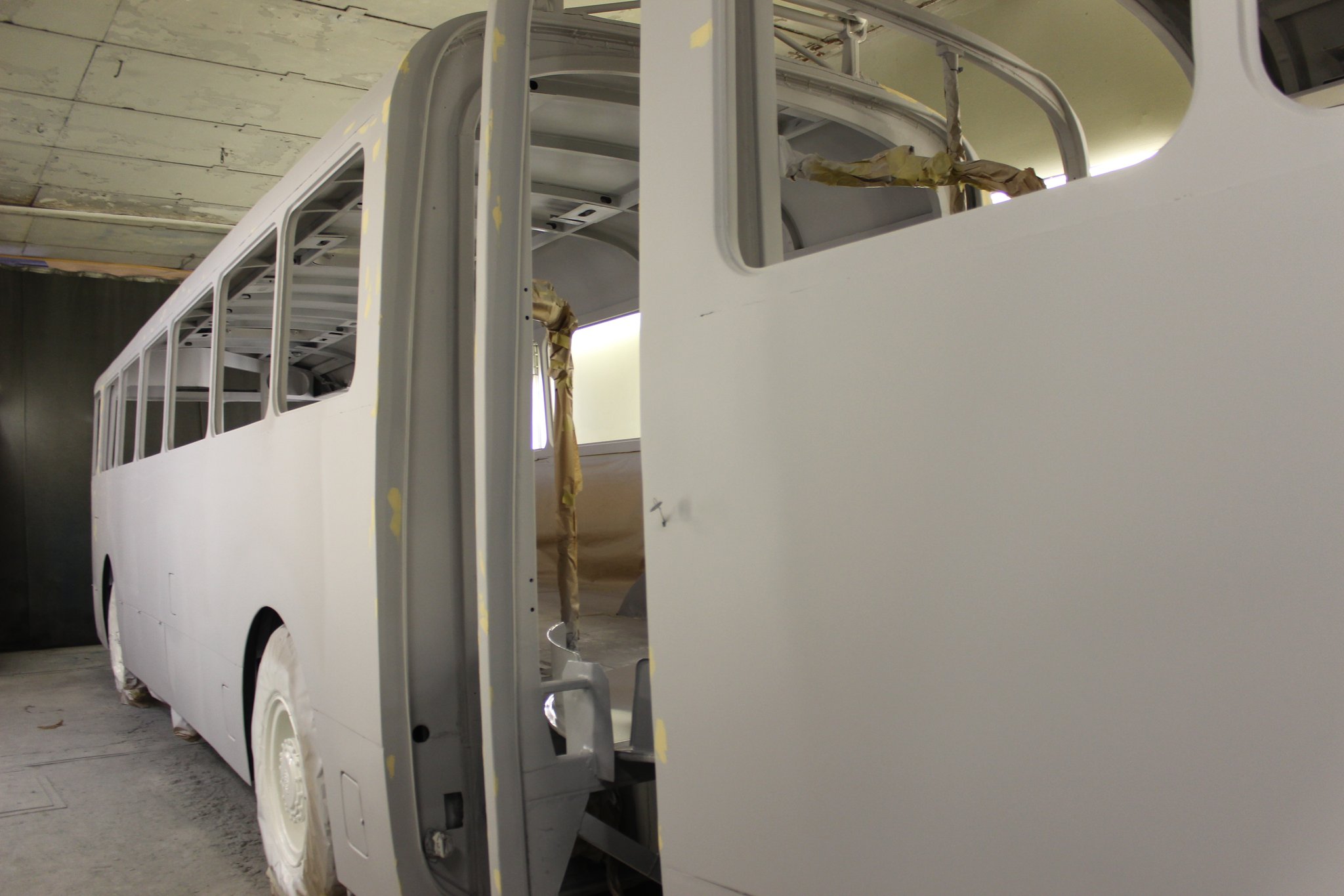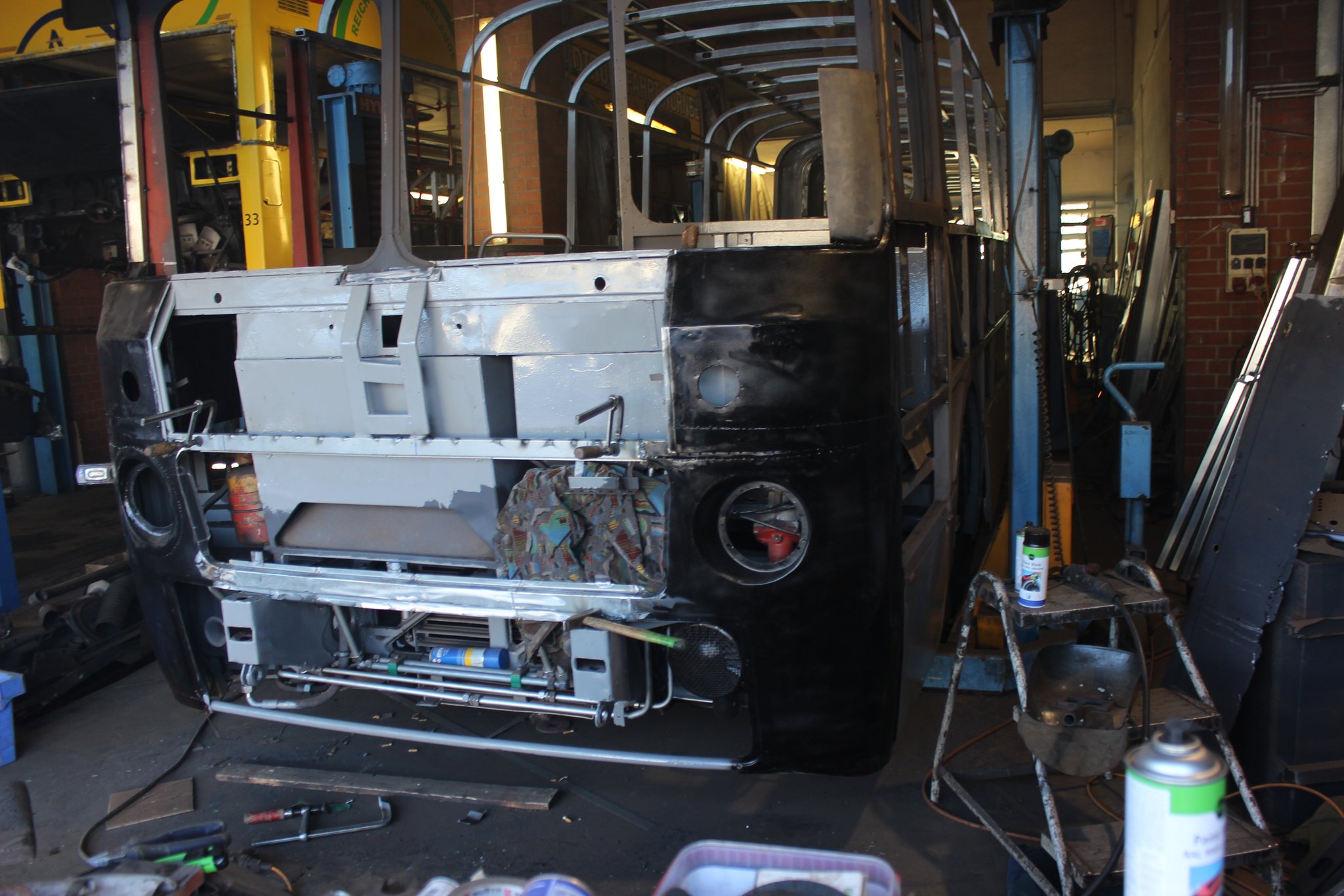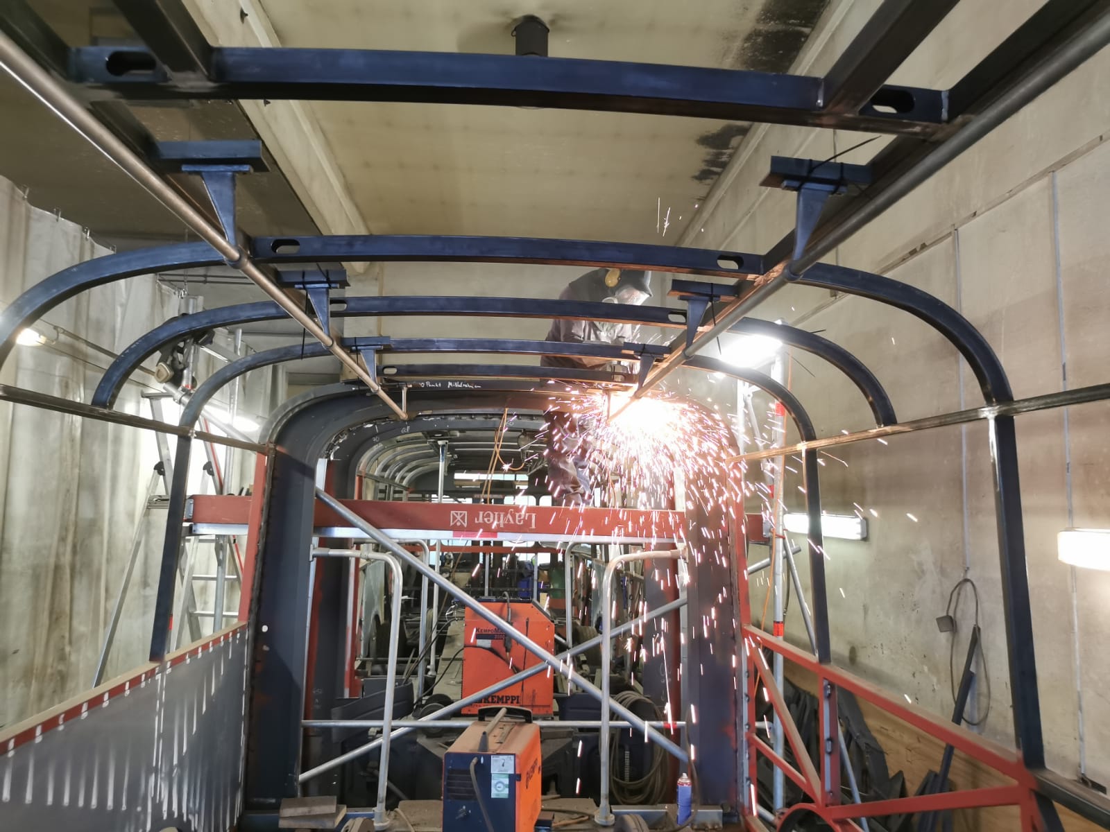 04.02.2022 - Einbau der Fußbodenplatten; Türaufnahme Tür 1 und 2; Neuanfertigung der Klappenstützen; Instandsetzung sowie Montage des Dachendblech mit Zielschildeinsatz; Instandsetzung des Fahrerfensters; Instandsetzung Stoßfänger vorn; Fahrzeugisolierung; neu angefertigte Scheibenaufnahmen einschweißen