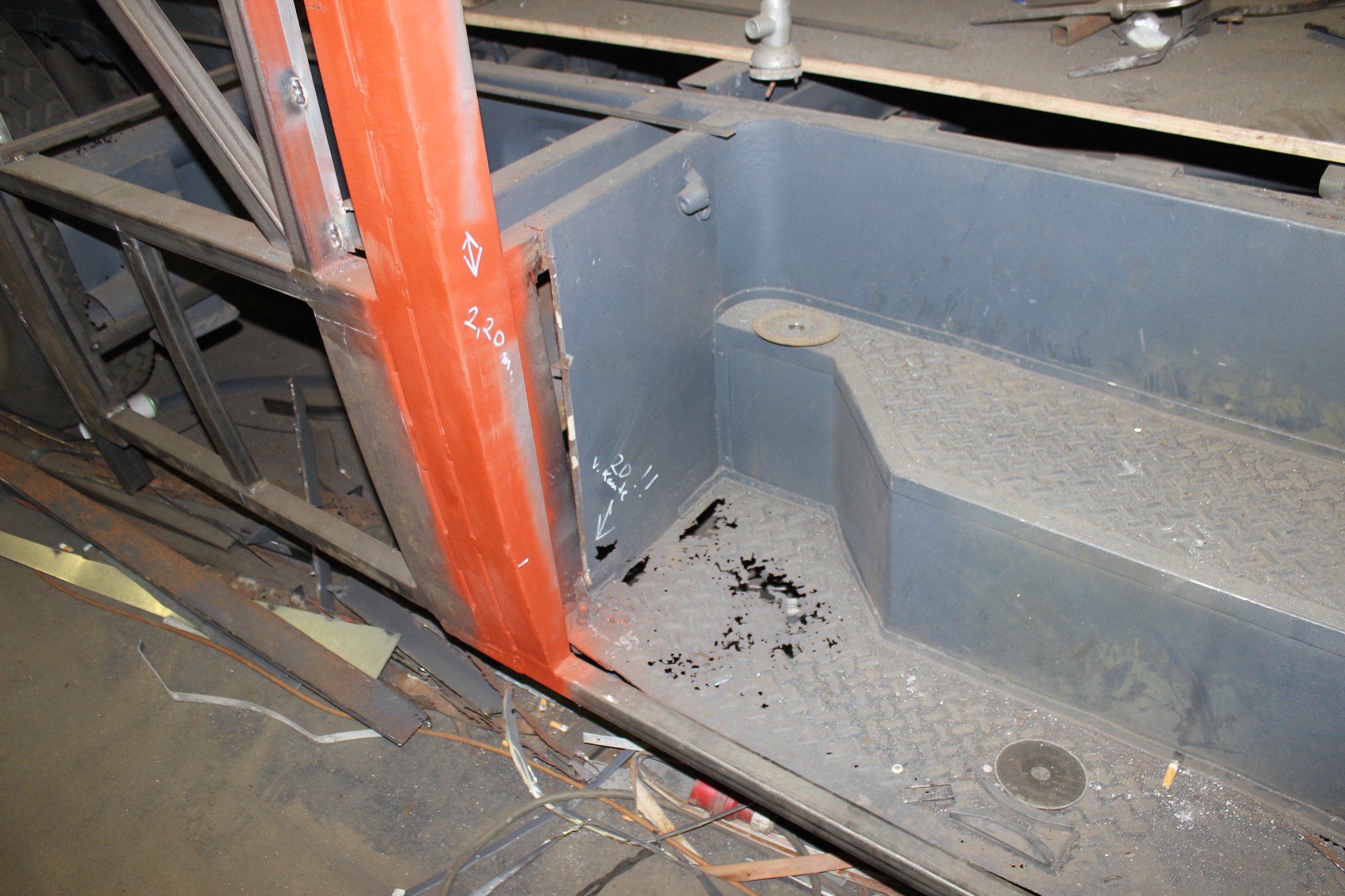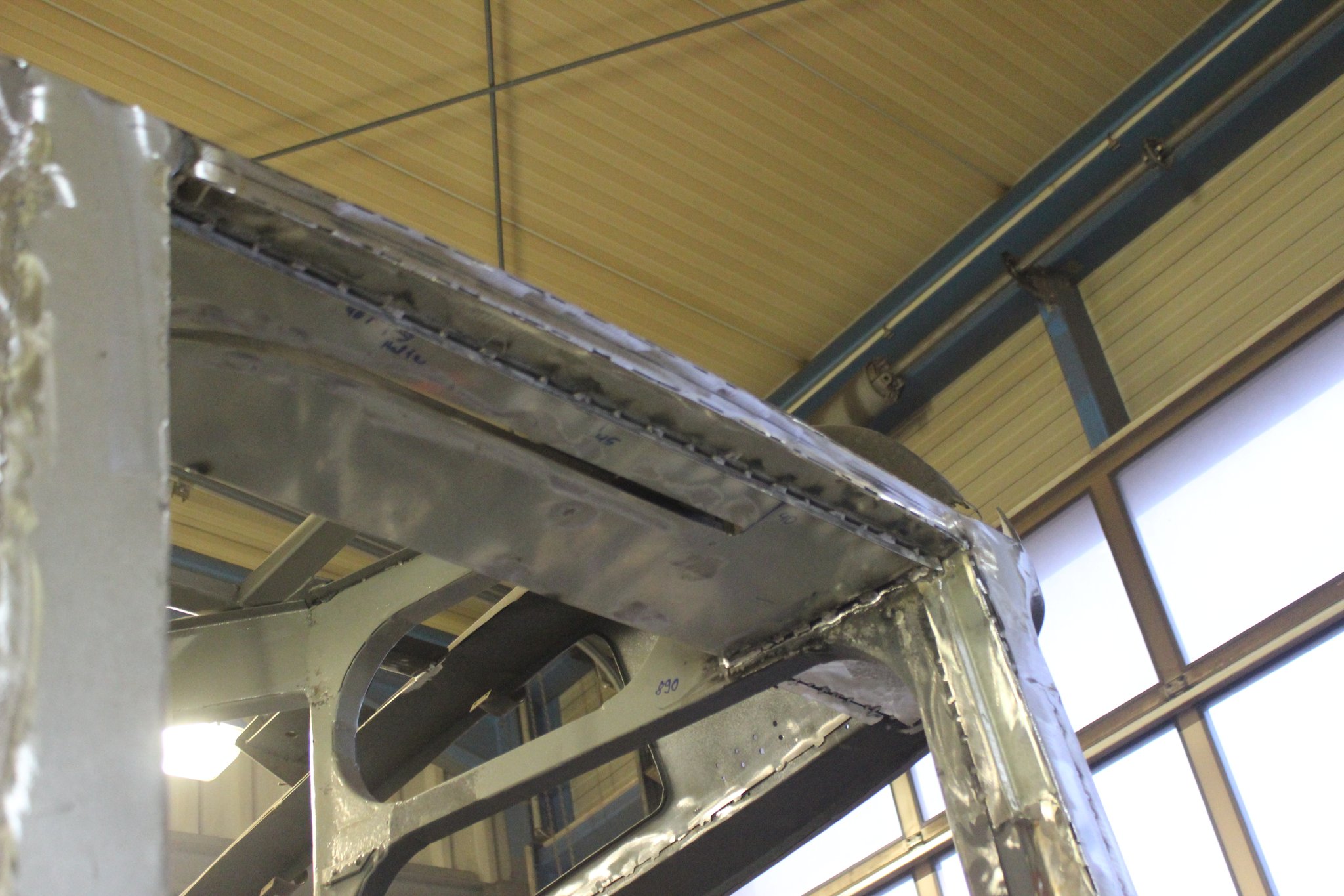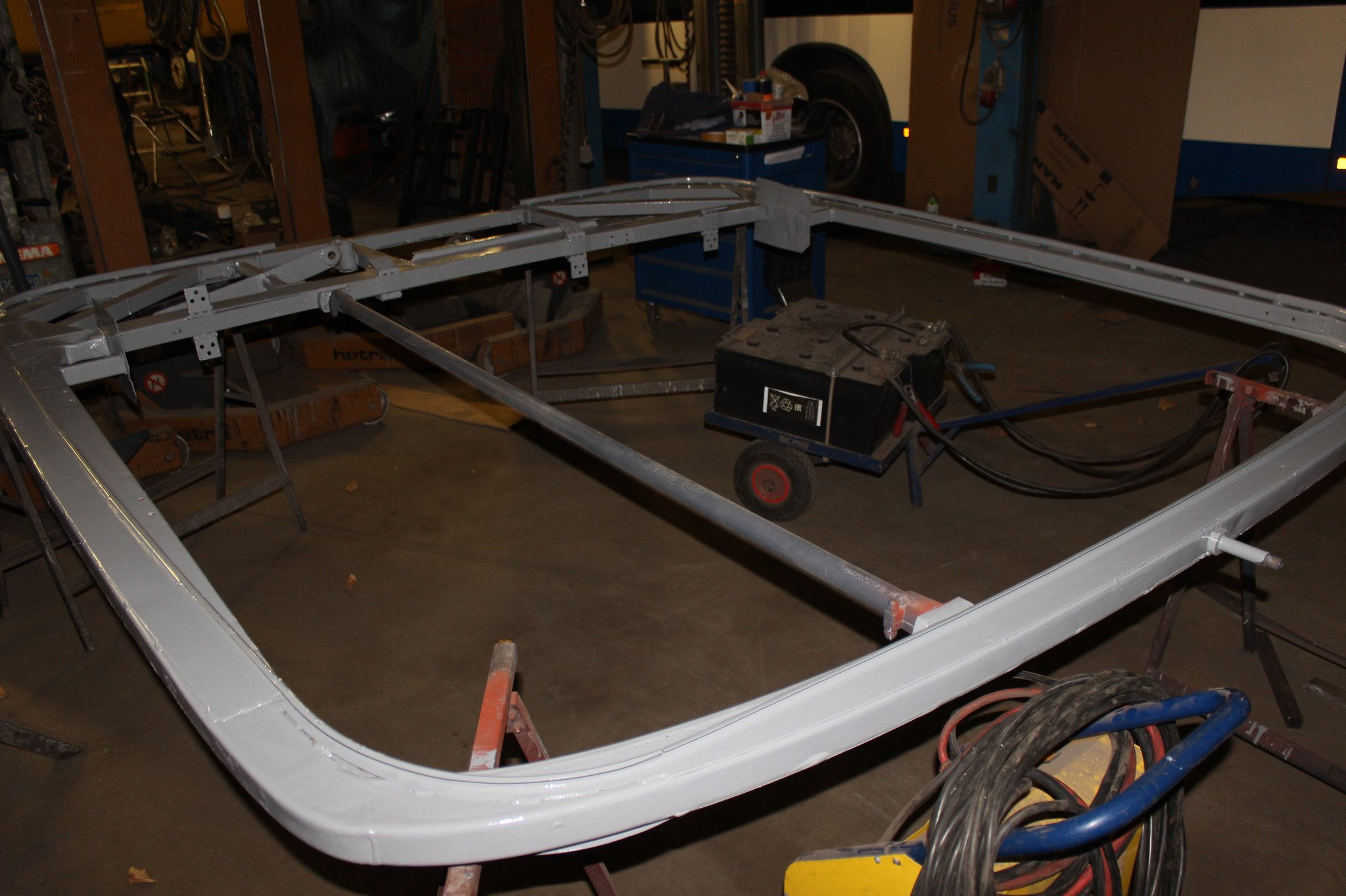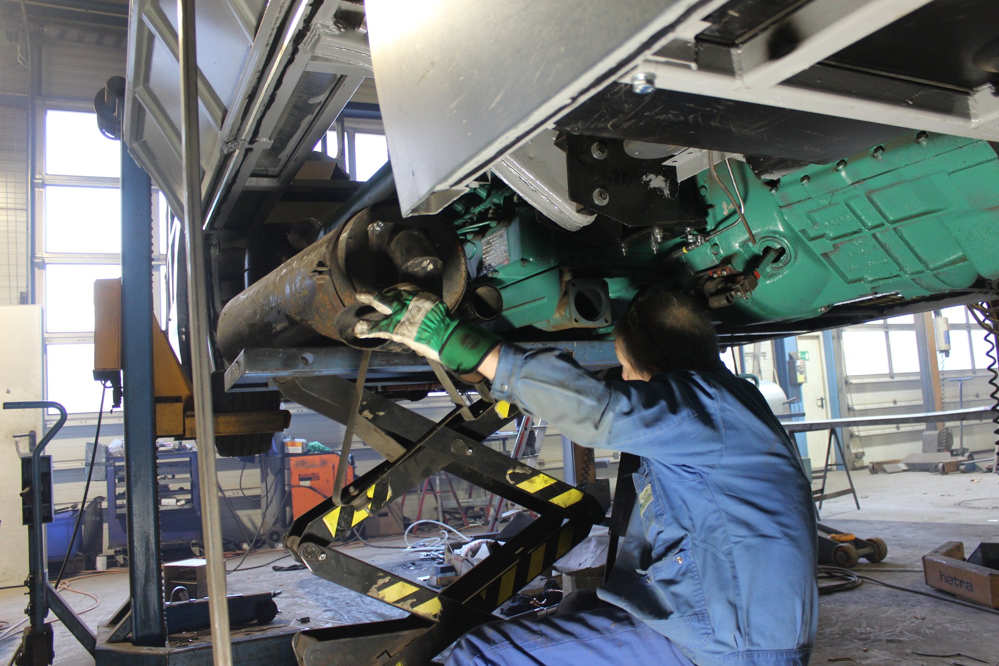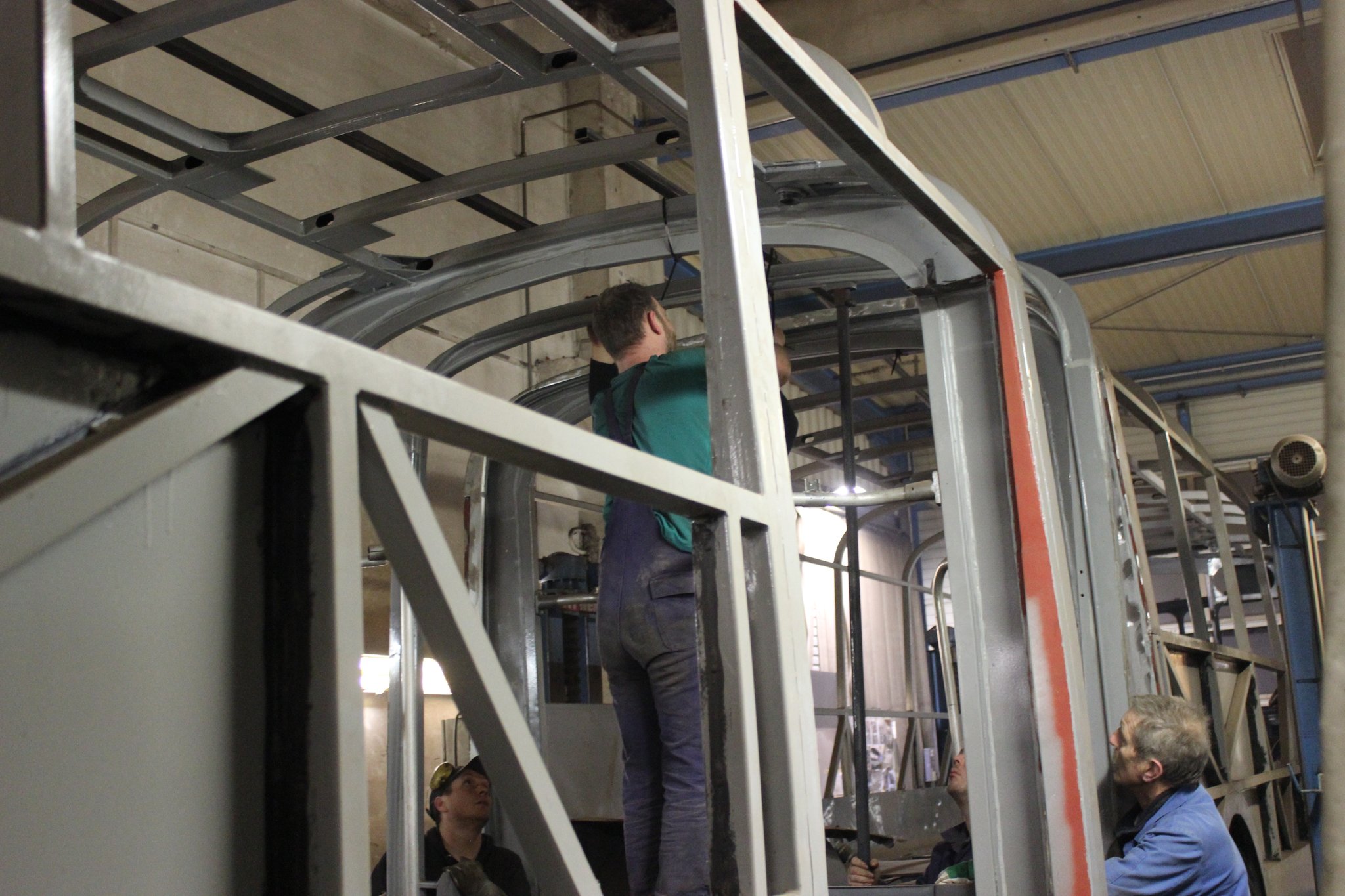 04.02.2022 - Einbau der Fußbodenplatten; Türaufnahme Tür 1 und 2; Neuanfertigung der Klappenstützen; Instandsetzung sowie Montage des Dachendblech mit Zielschildeinsatz; Instandsetzung des Fahrerfensters; Instandsetzung Stoßfänger vorn; Fahrzeugisolierung; neu angefertigte Scheibenaufnahmen einschweißen