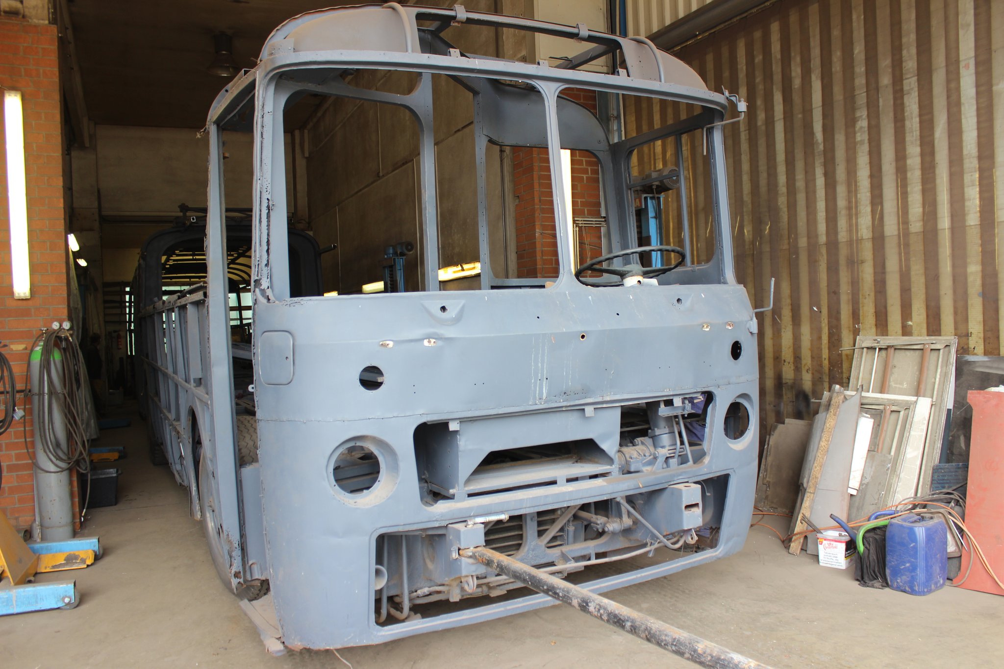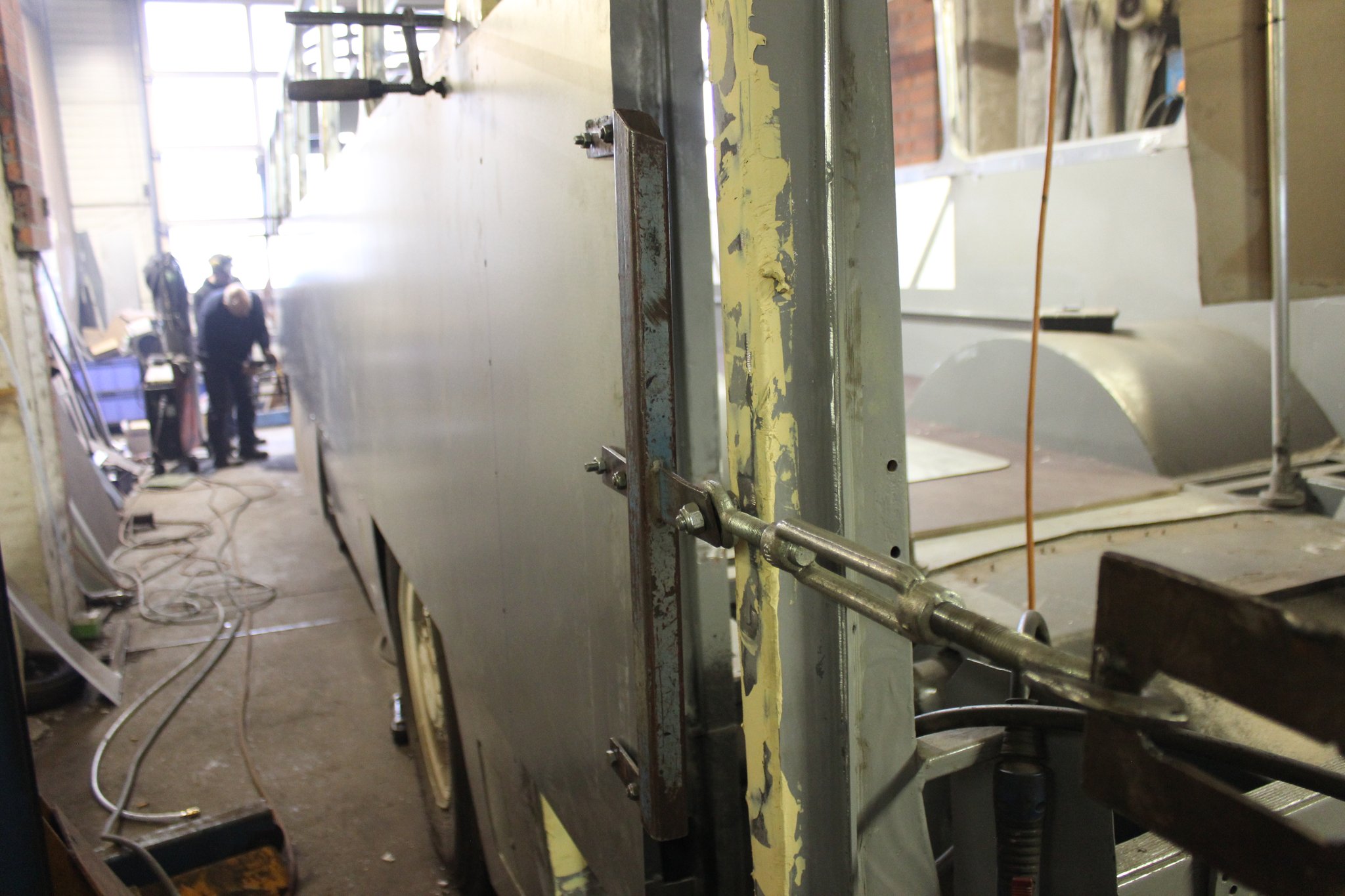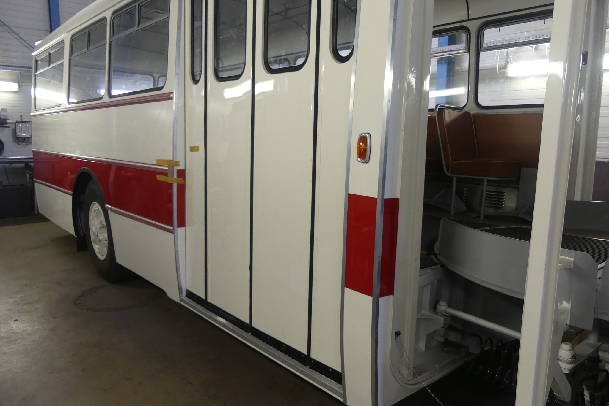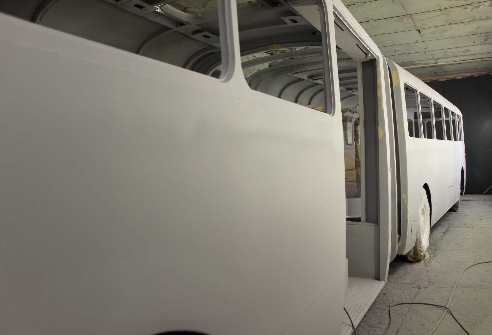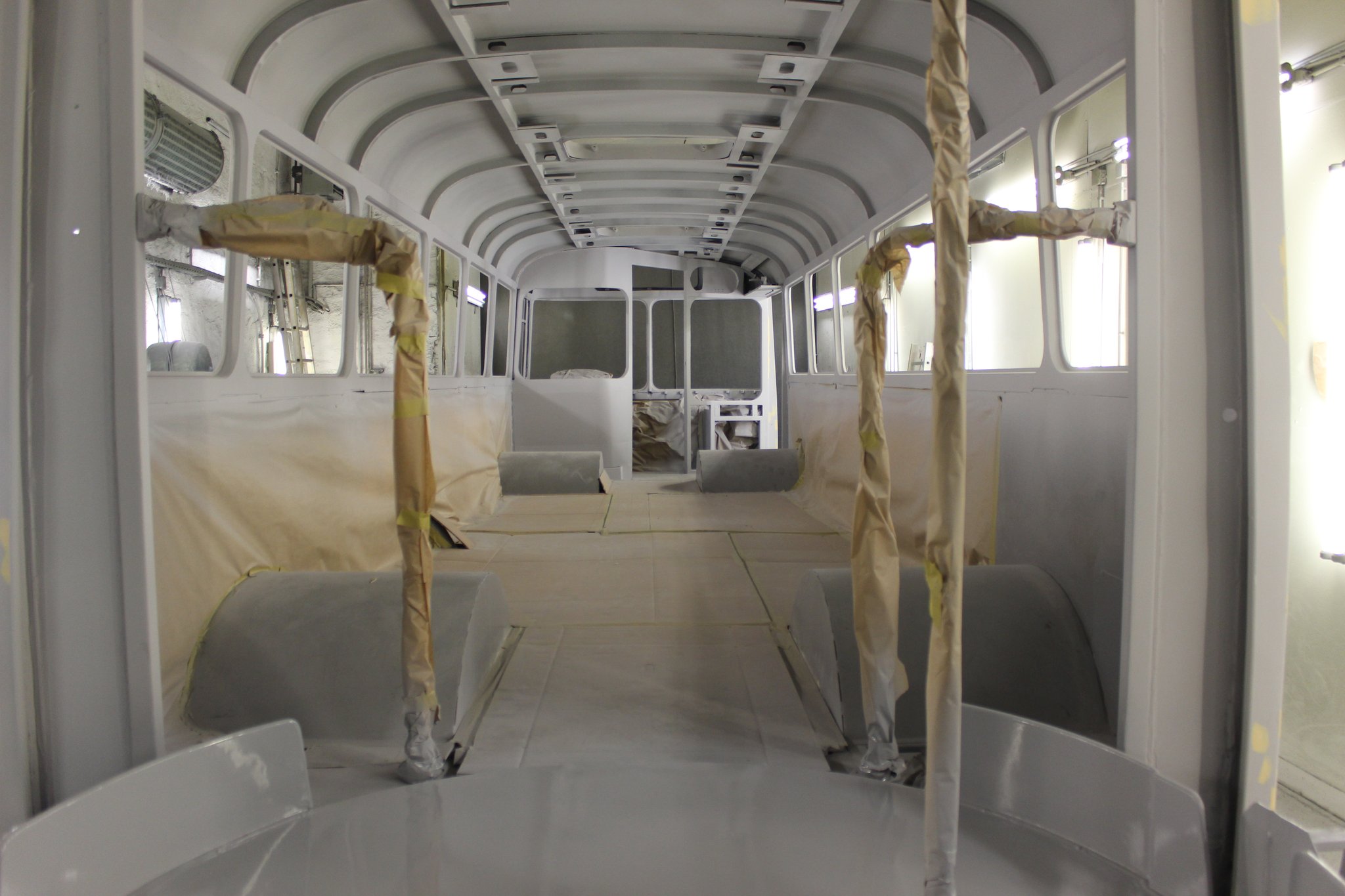 04.02.2022 - Einbau der Fußbodenplatten; Türaufnahme Tür 1 und 2; Neuanfertigung der Klappenstützen; Instandsetzung sowie Montage des Dachendblech mit Zielschildeinsatz; Instandsetzung des Fahrerfensters; Instandsetzung Stoßfänger vorn; Fahrzeugisolierung; neu angefertigte Scheibenaufnahmen einschweißen