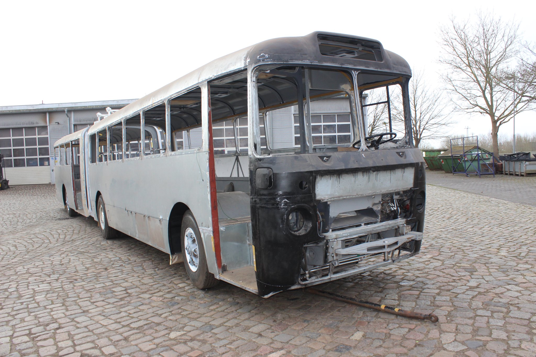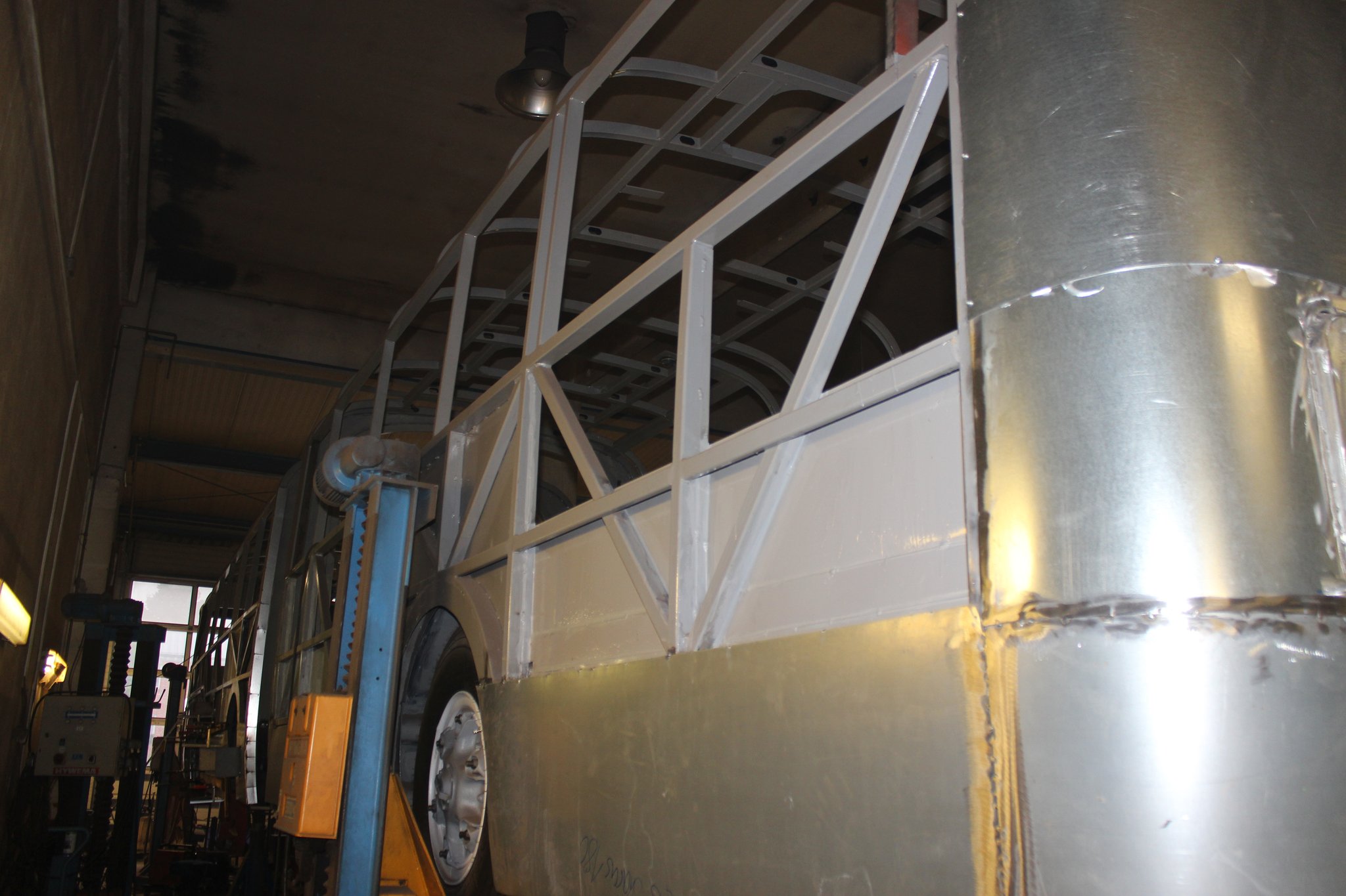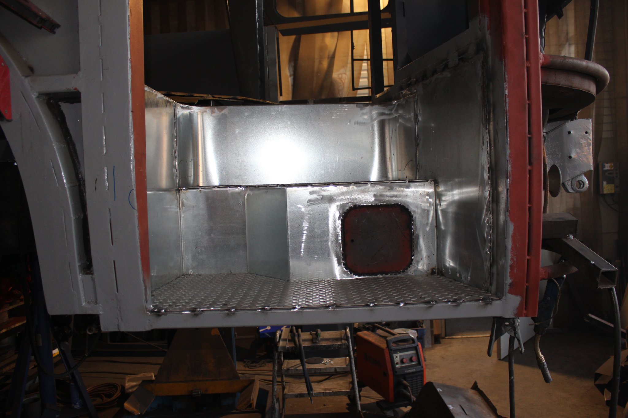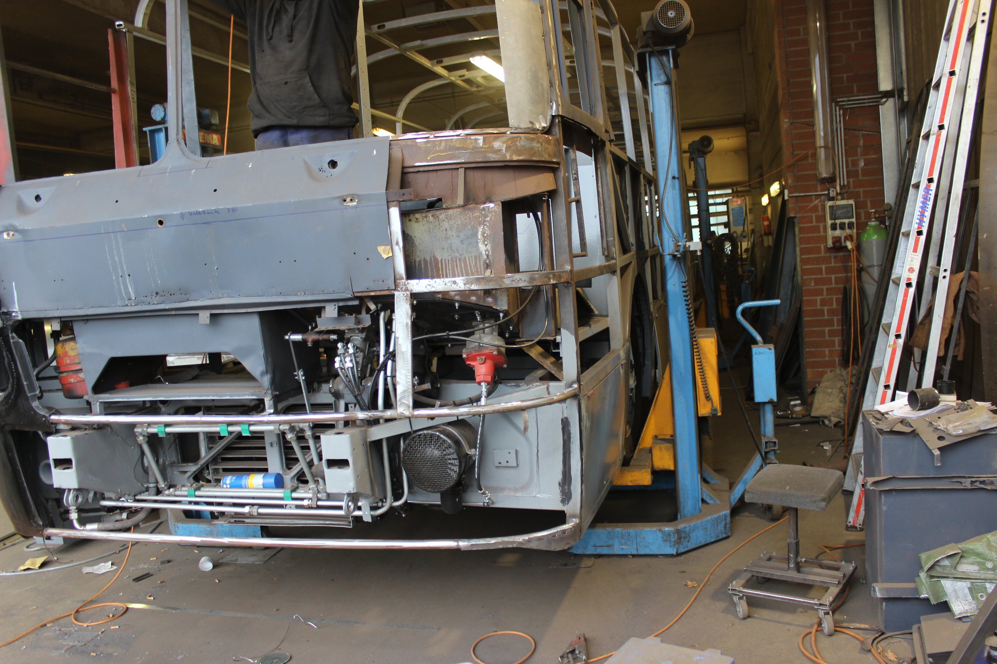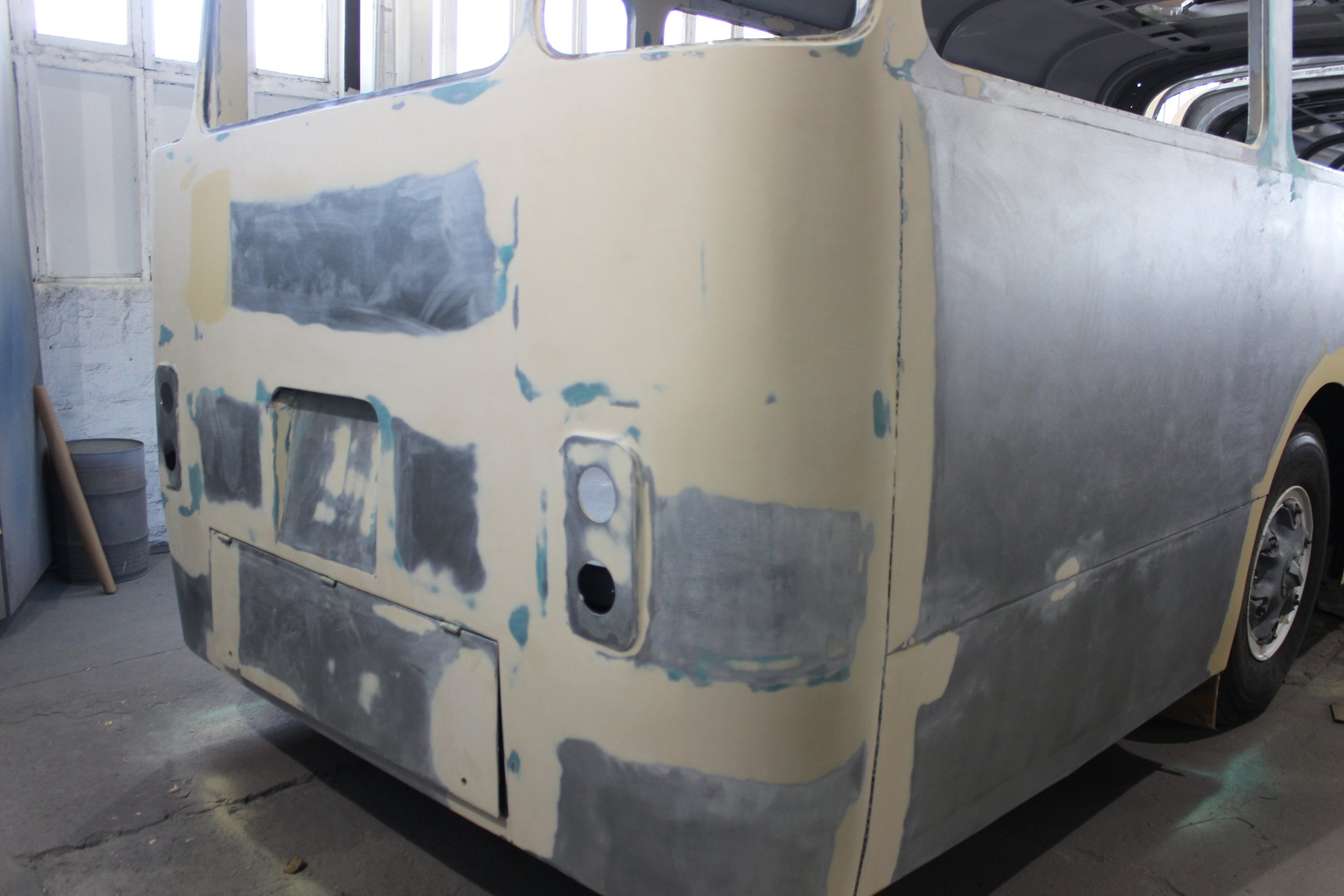 04.02.2022 - Einbau der Fußbodenplatten; Türaufnahme Tür 1 und 2; Neuanfertigung der Klappenstützen; Instandsetzung sowie Montage des Dachendblech mit Zielschildeinsatz; Instandsetzung des Fahrerfensters; Instandsetzung Stoßfänger vorn; Fahrzeugisolierung; neu angefertigte Scheibenaufnahmen einschweißen