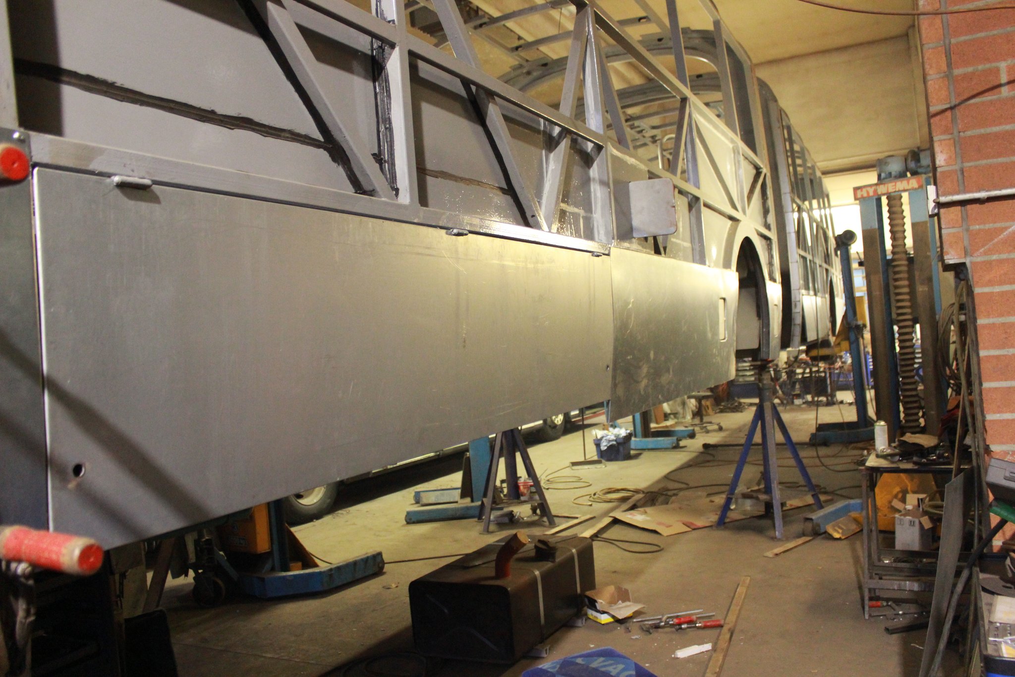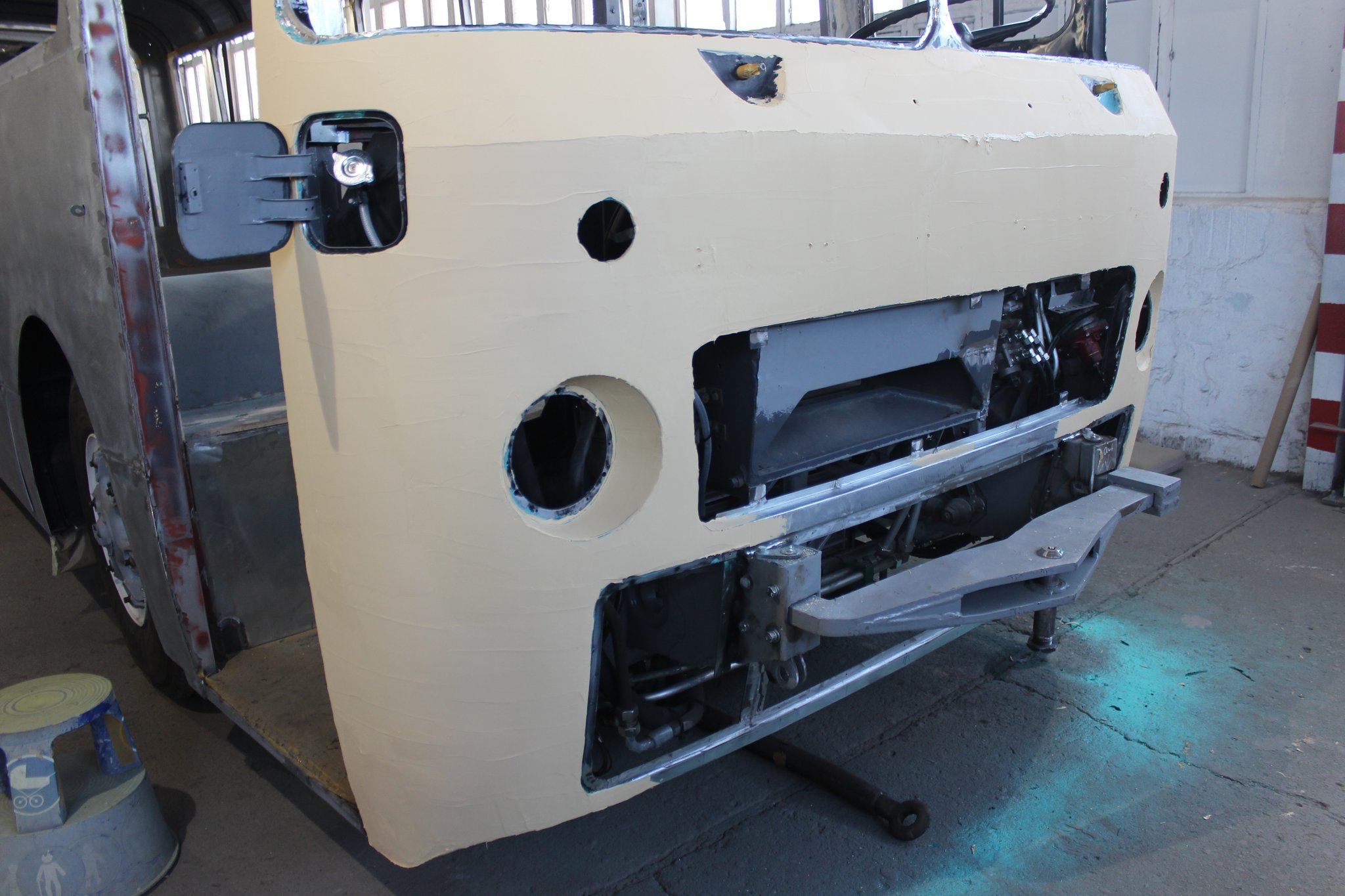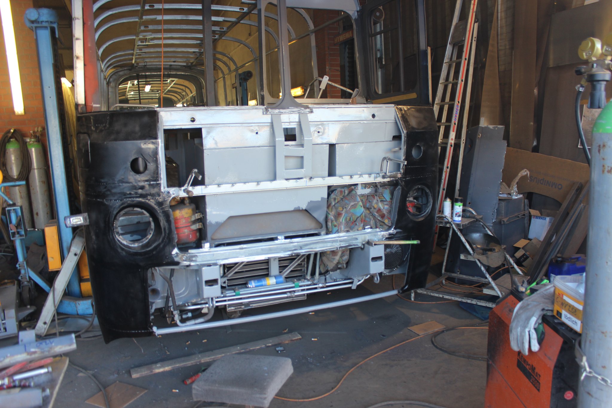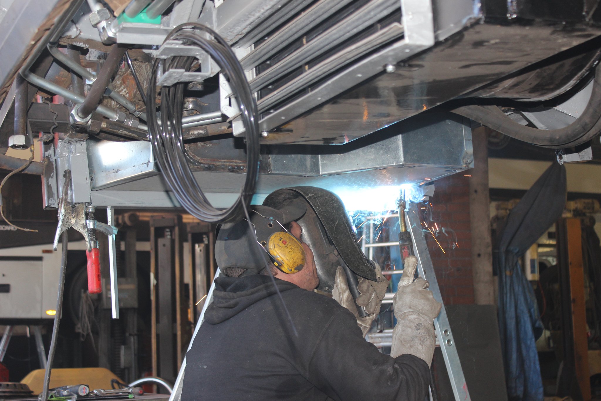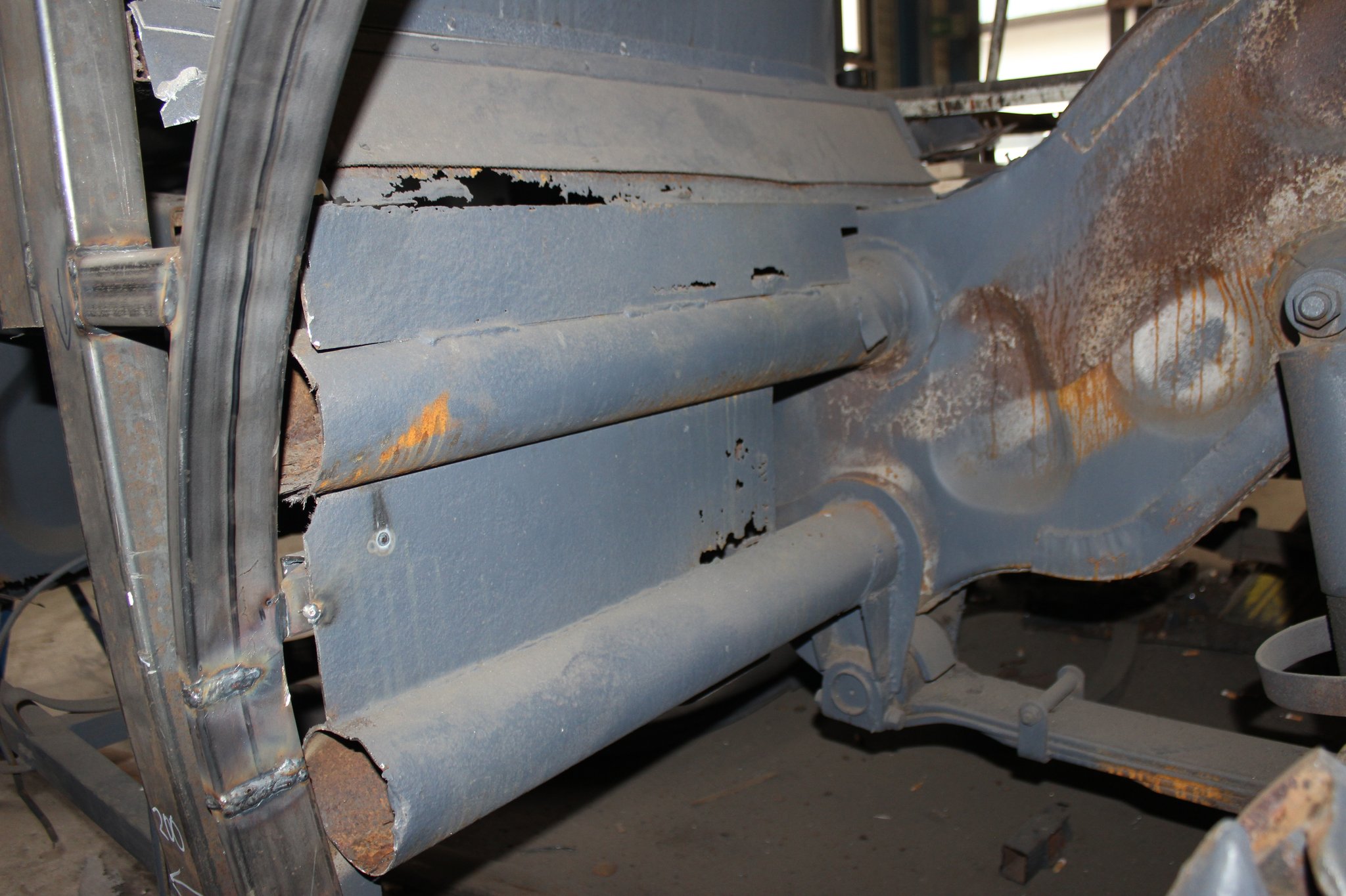 04.02.2022 - Einbau der Fußbodenplatten; Türaufnahme Tür 1 und 2; Neuanfertigung der Klappenstützen; Instandsetzung sowie Montage des Dachendblech mit Zielschildeinsatz; Instandsetzung des Fahrerfensters; Instandsetzung Stoßfänger vorn; Fahrzeugisolierung; neu angefertigte Scheibenaufnahmen einschweißen