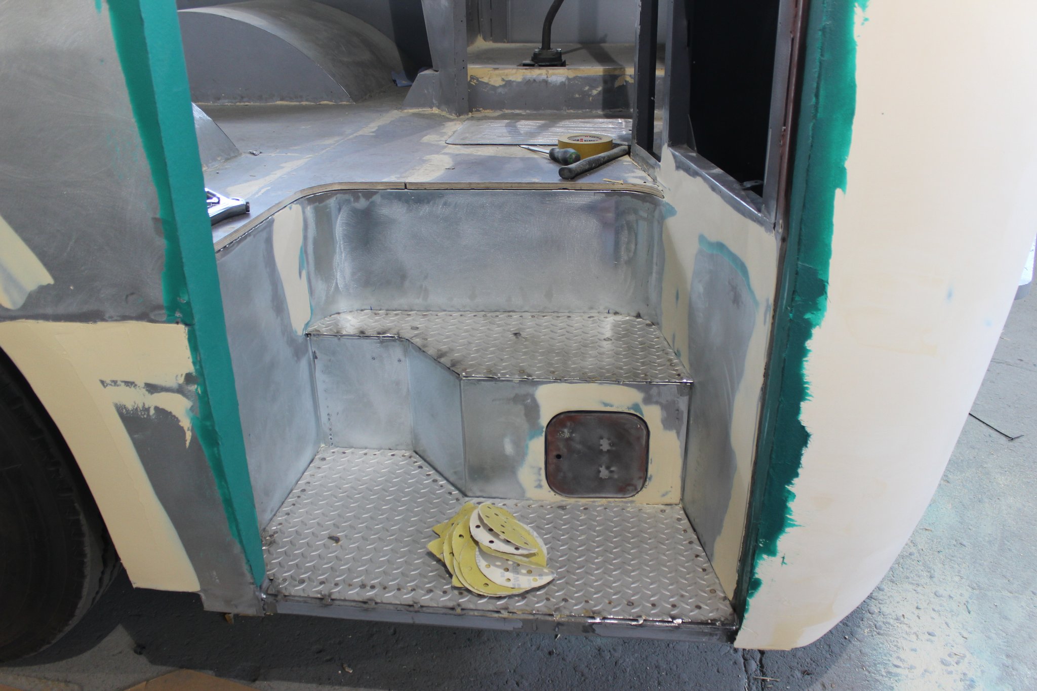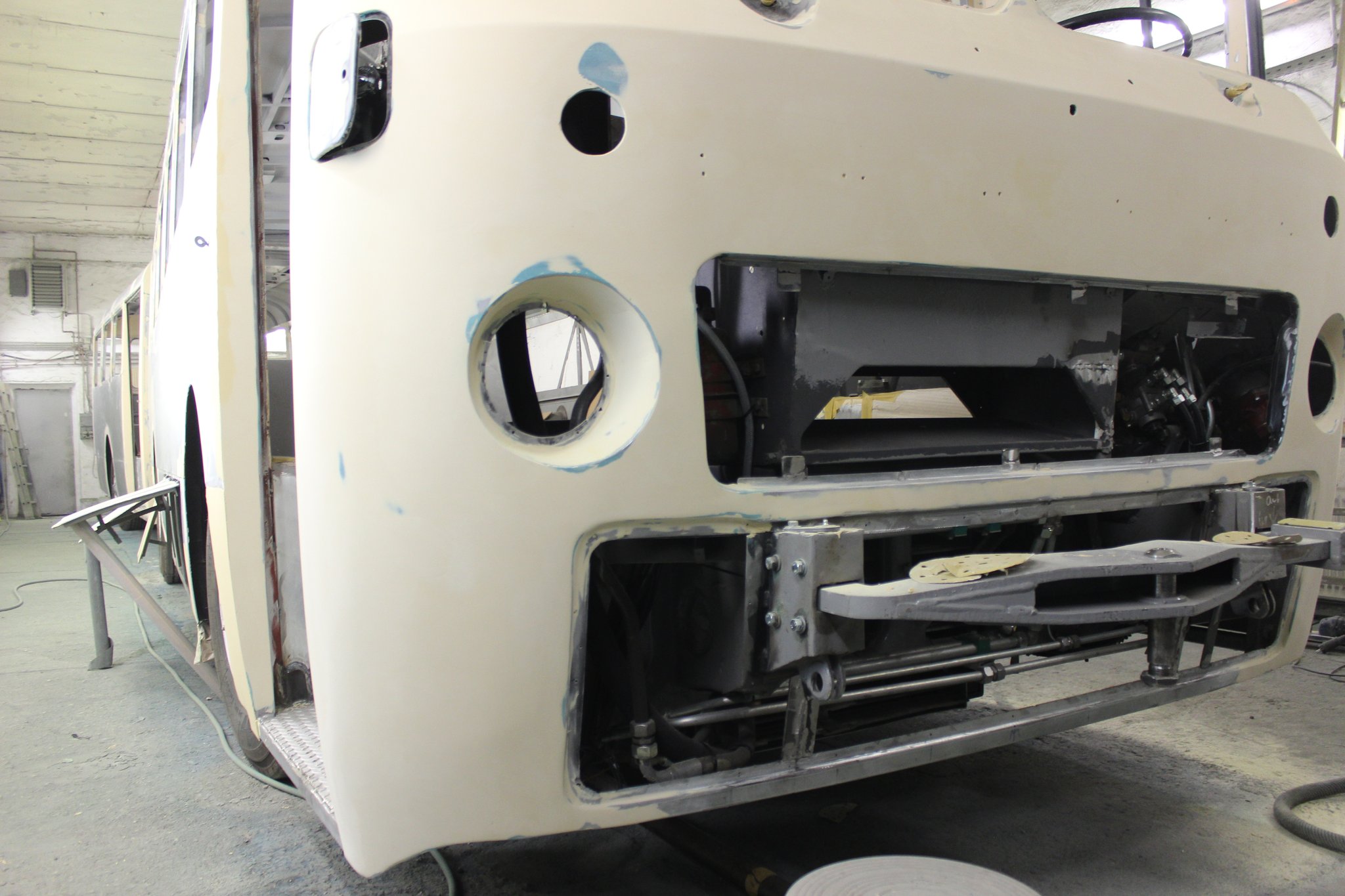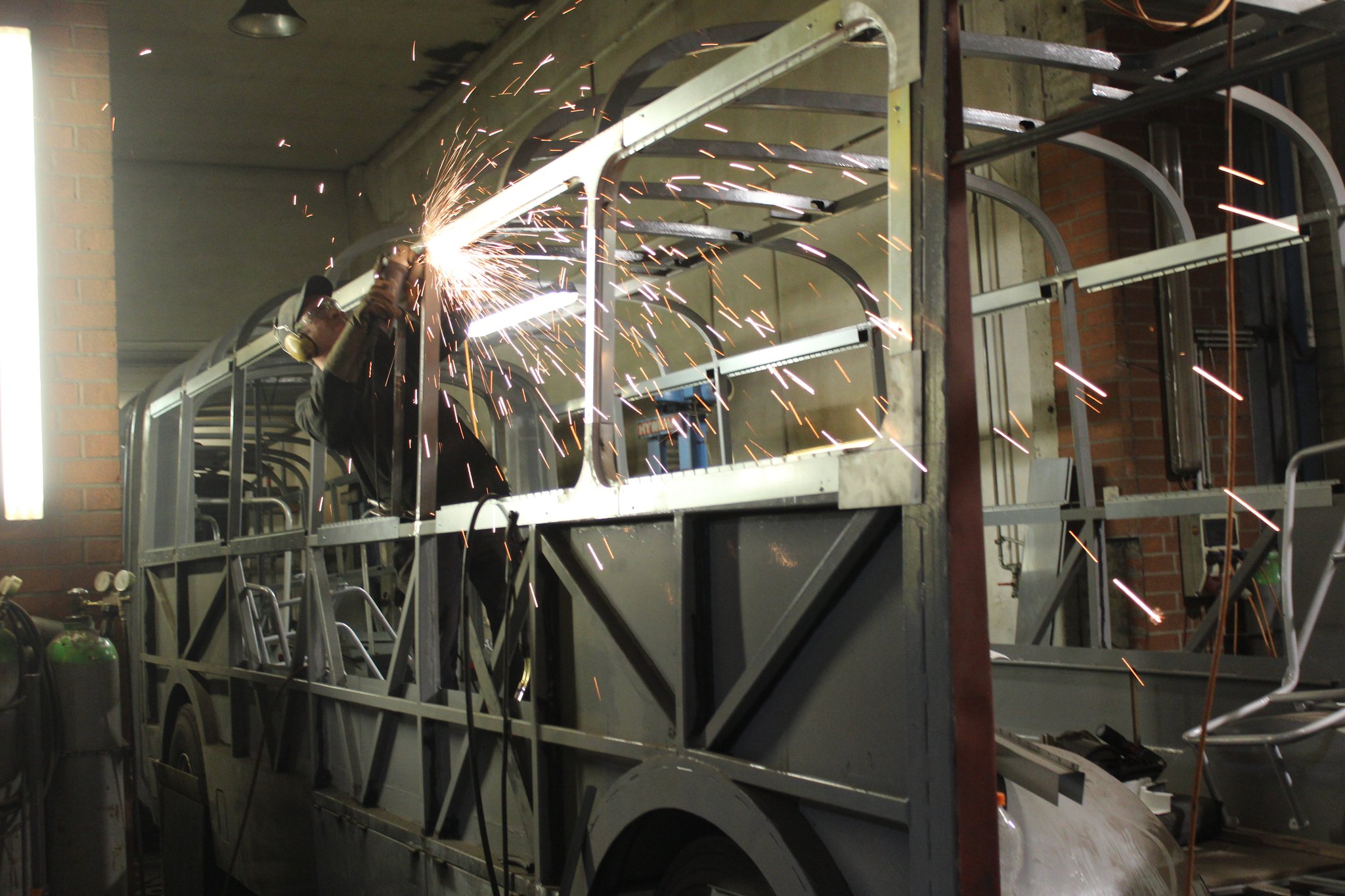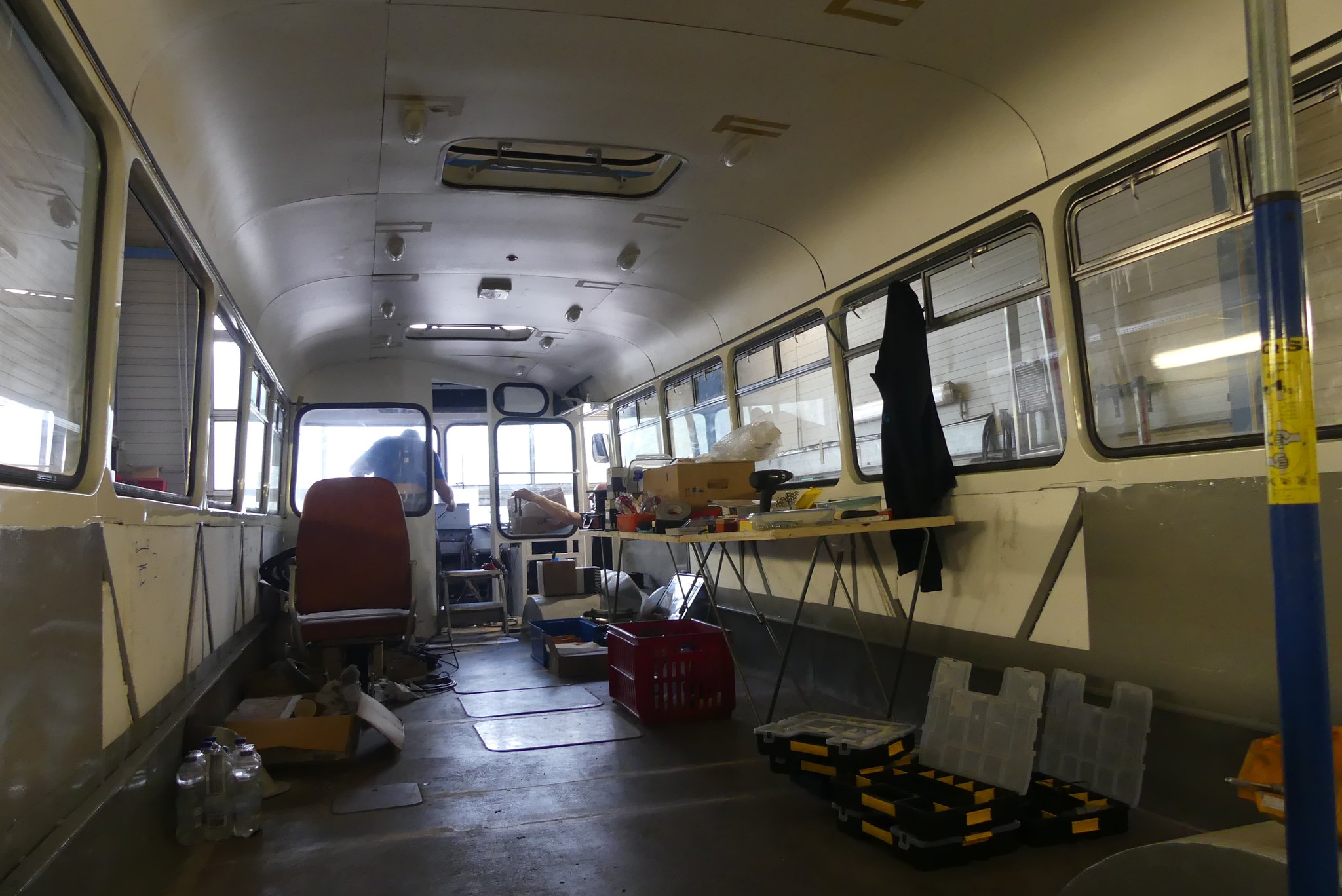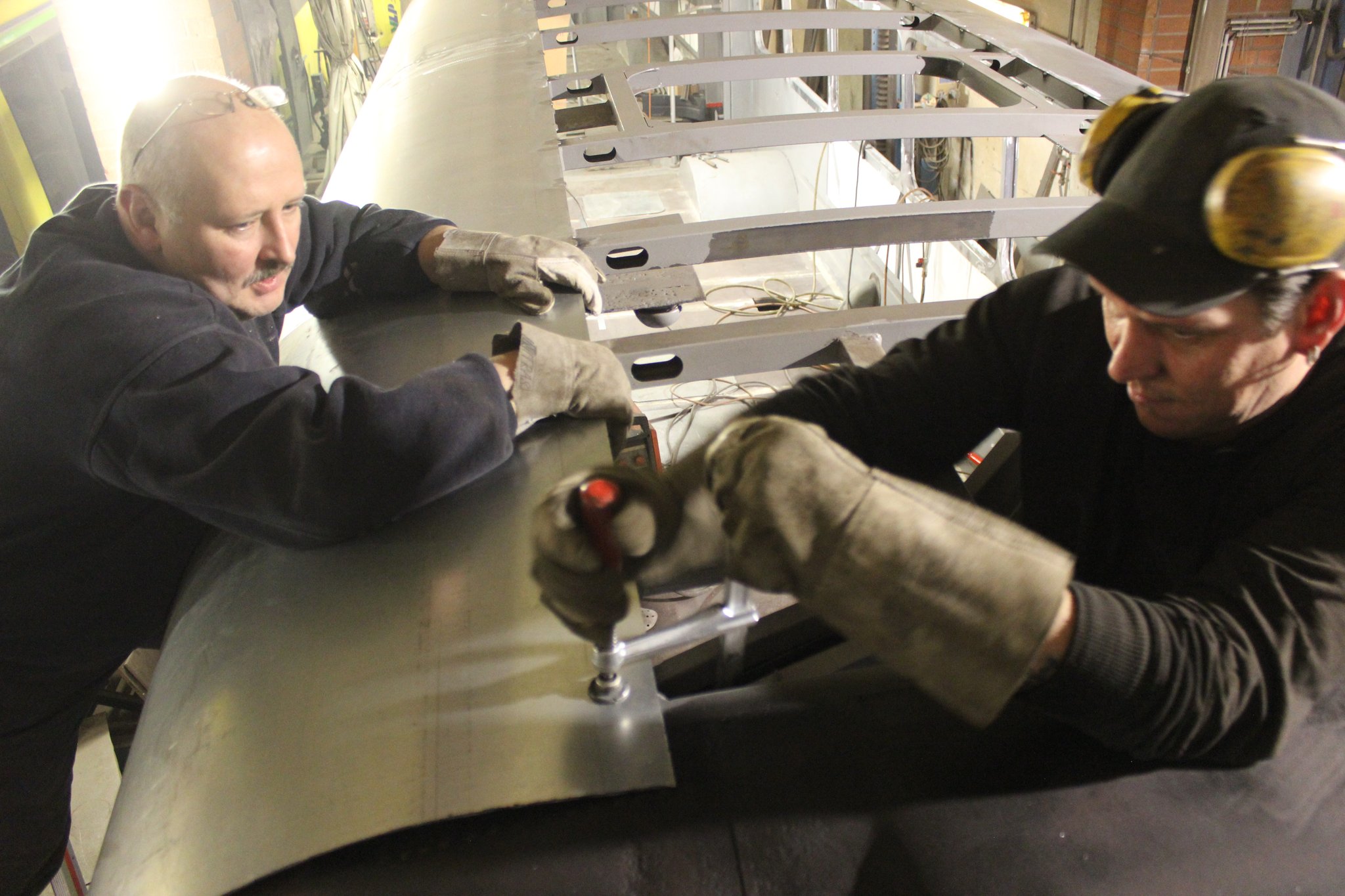 04.02.2022 - Einbau der Fußbodenplatten; Türaufnahme Tür 1 und 2; Neuanfertigung der Klappenstützen; Instandsetzung sowie Montage des Dachendblech mit Zielschildeinsatz; Instandsetzung des Fahrerfensters; Instandsetzung Stoßfänger vorn; Fahrzeugisolierung; neu angefertigte Scheibenaufnahmen einschweißen