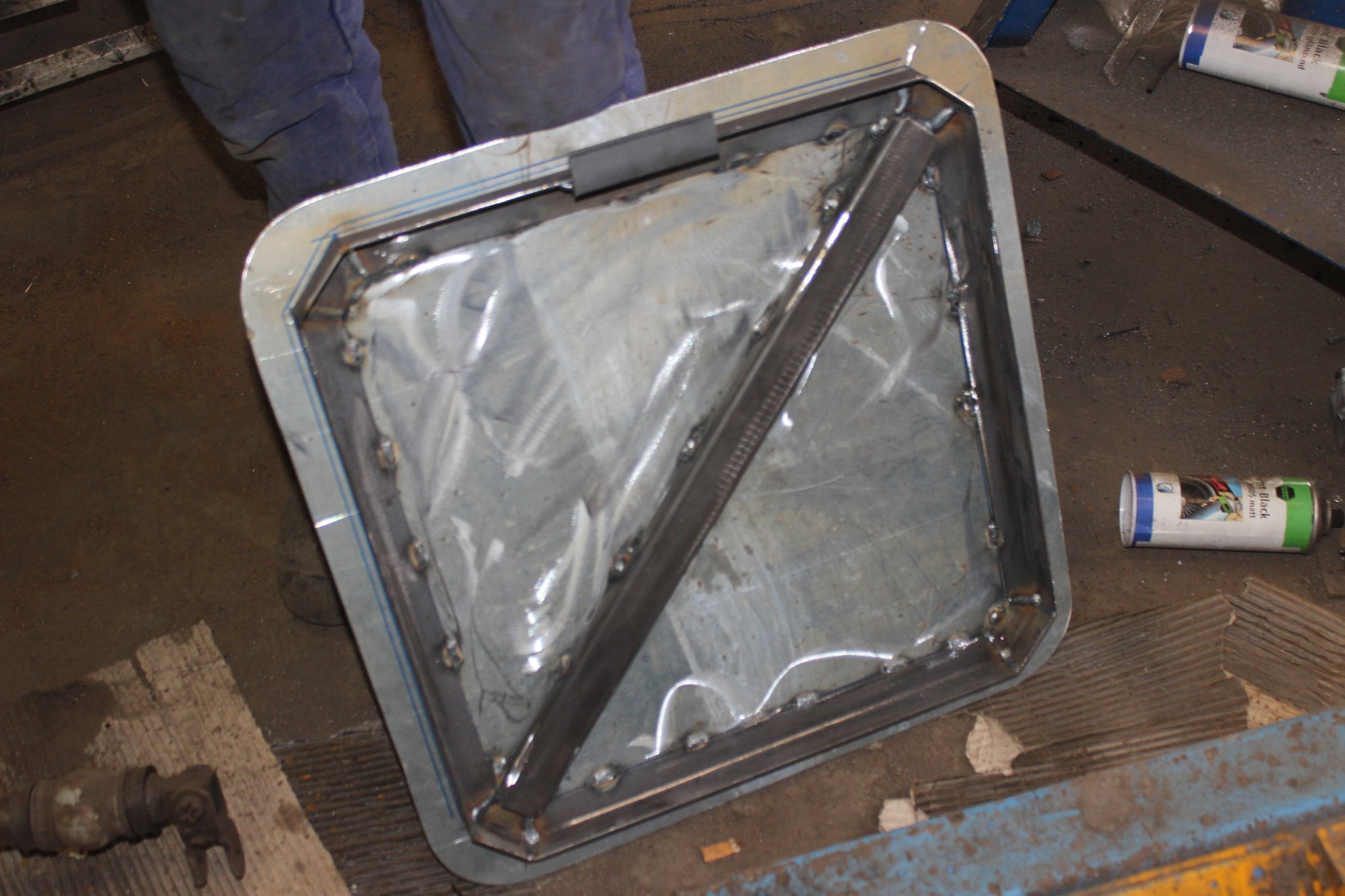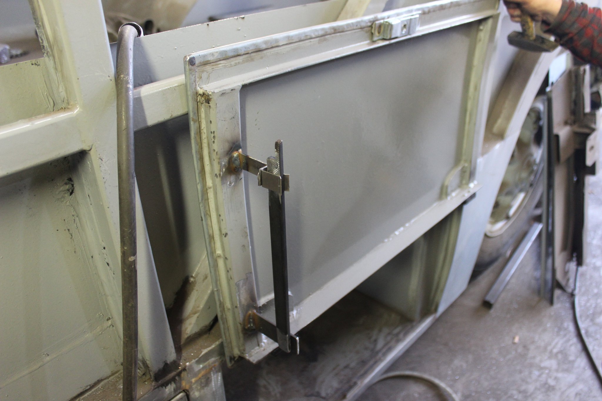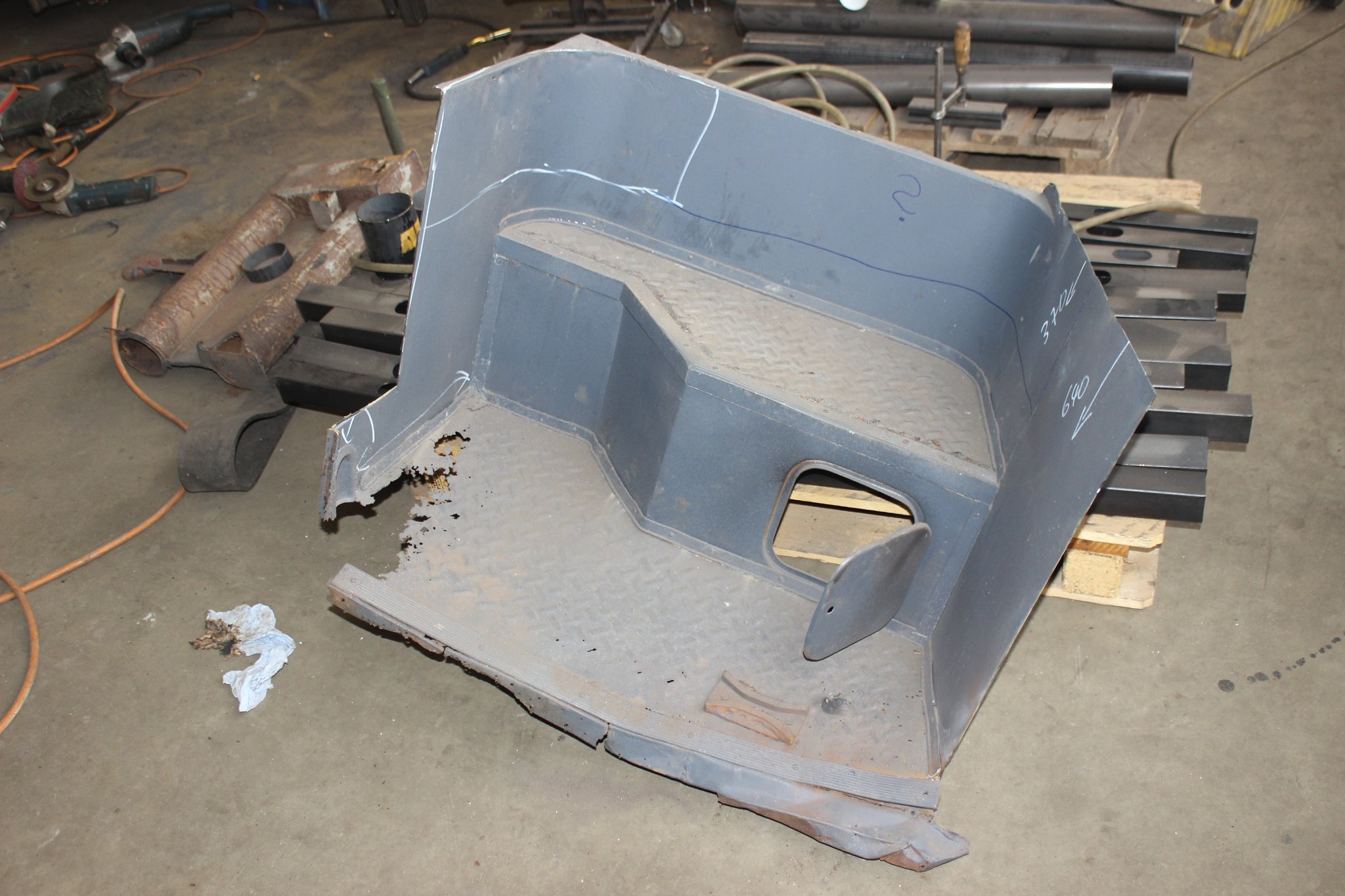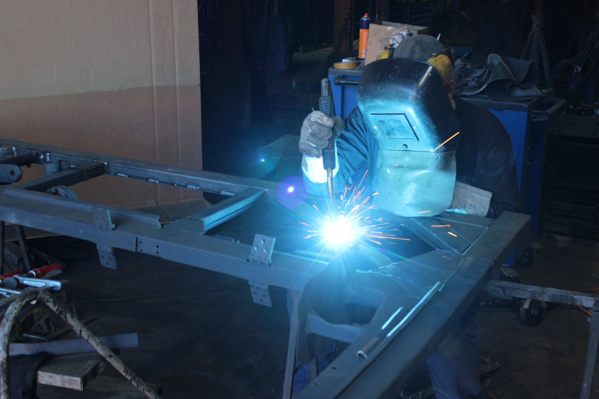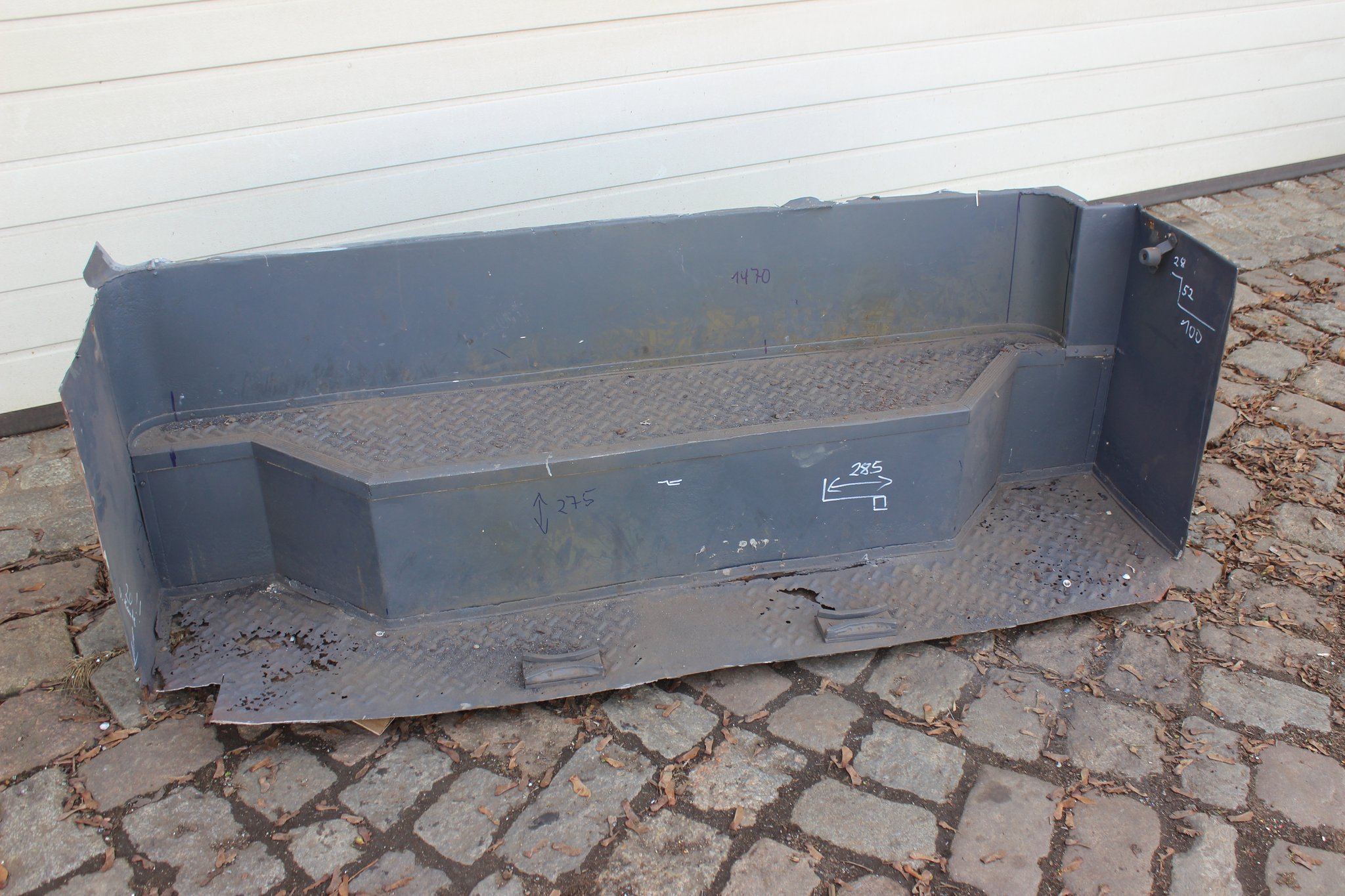 04.02.2022 - Einbau der Fußbodenplatten; Türaufnahme Tür 1 und 2; Neuanfertigung der Klappenstützen; Instandsetzung sowie Montage des Dachendblech mit Zielschildeinsatz; Instandsetzung des Fahrerfensters; Instandsetzung Stoßfänger vorn; Fahrzeugisolierung; neu angefertigte Scheibenaufnahmen einschweißen