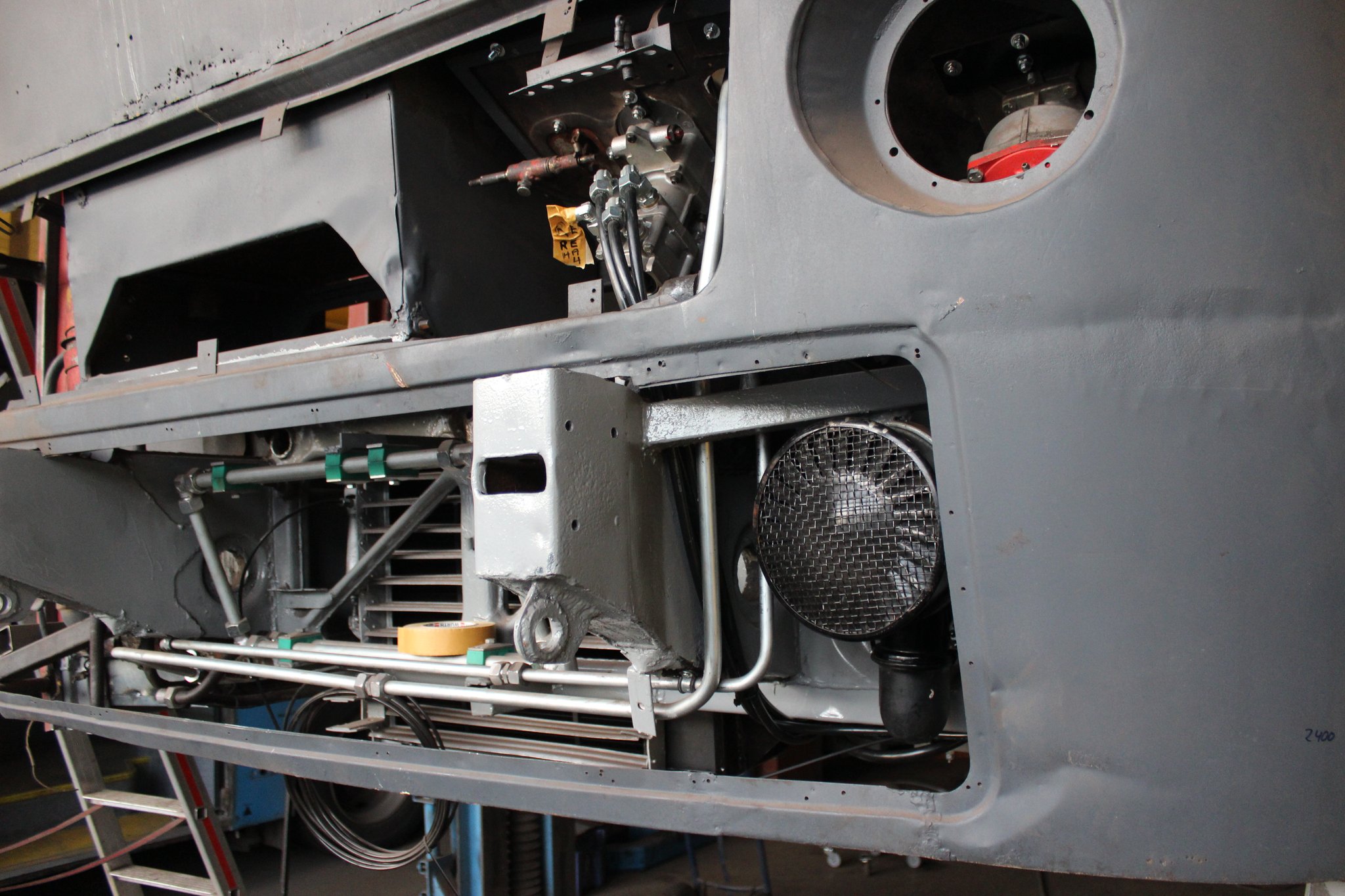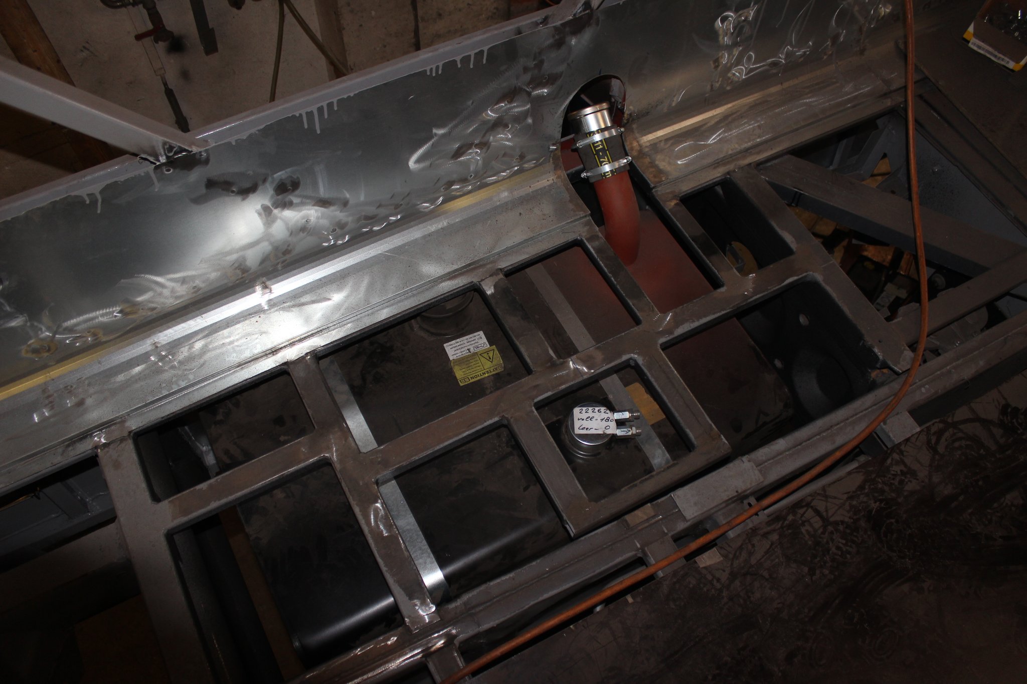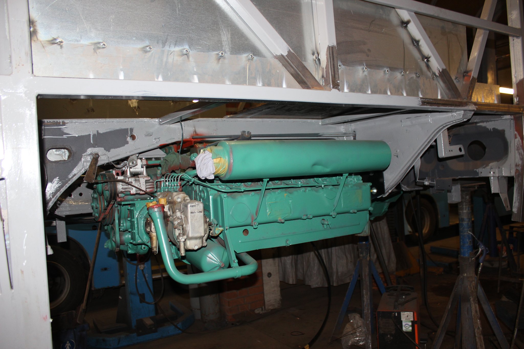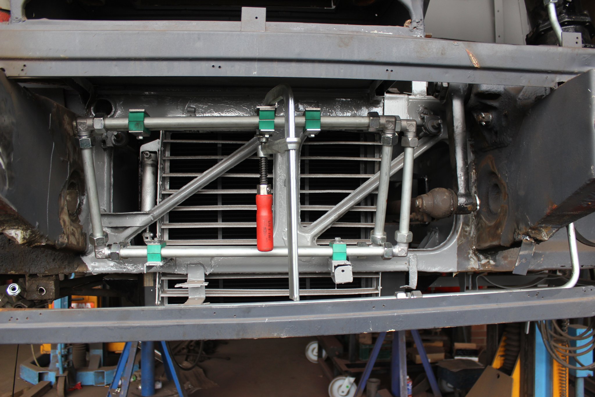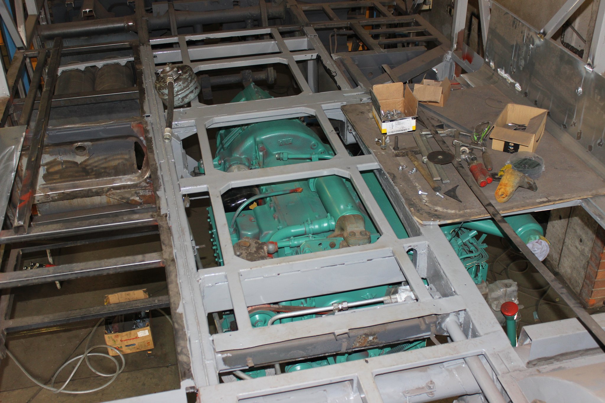 26.04.2021 - Schlosserarbeiten: Einbau Heizung u. Tank im Nachläufer, farbliche Aufarbeitung Motor u. Getriebe, Einbau Kühlkreislauf für den Lüftermotor