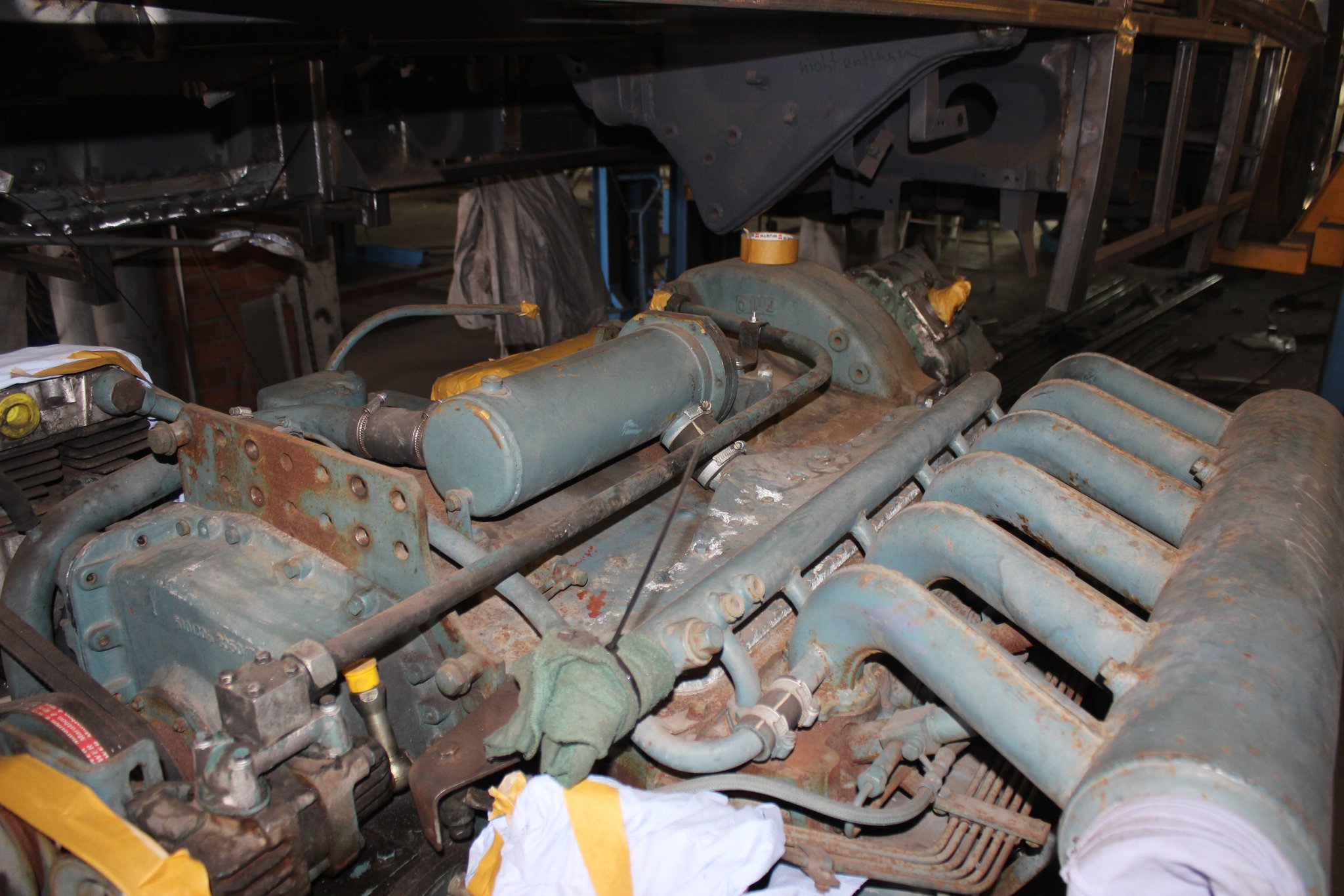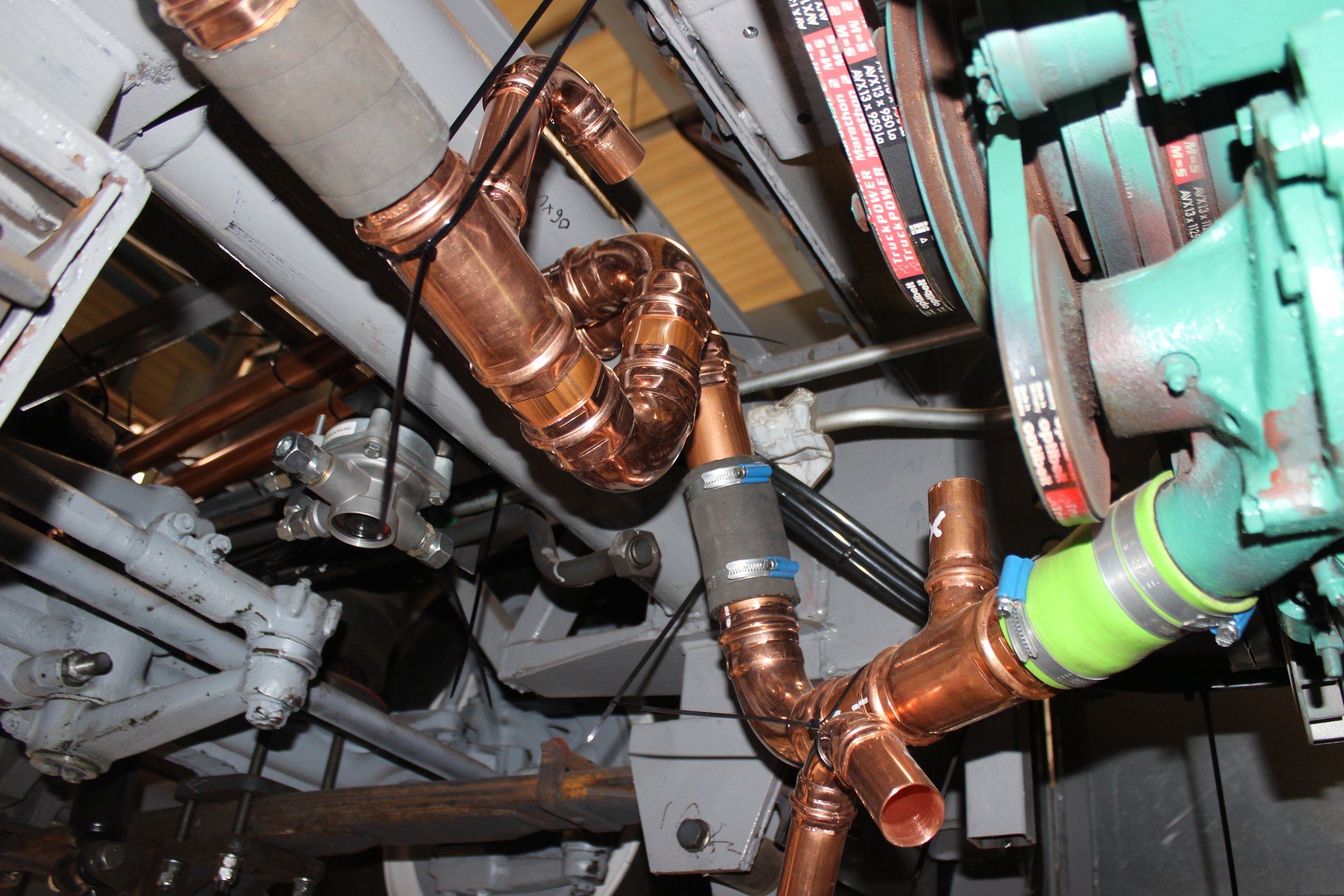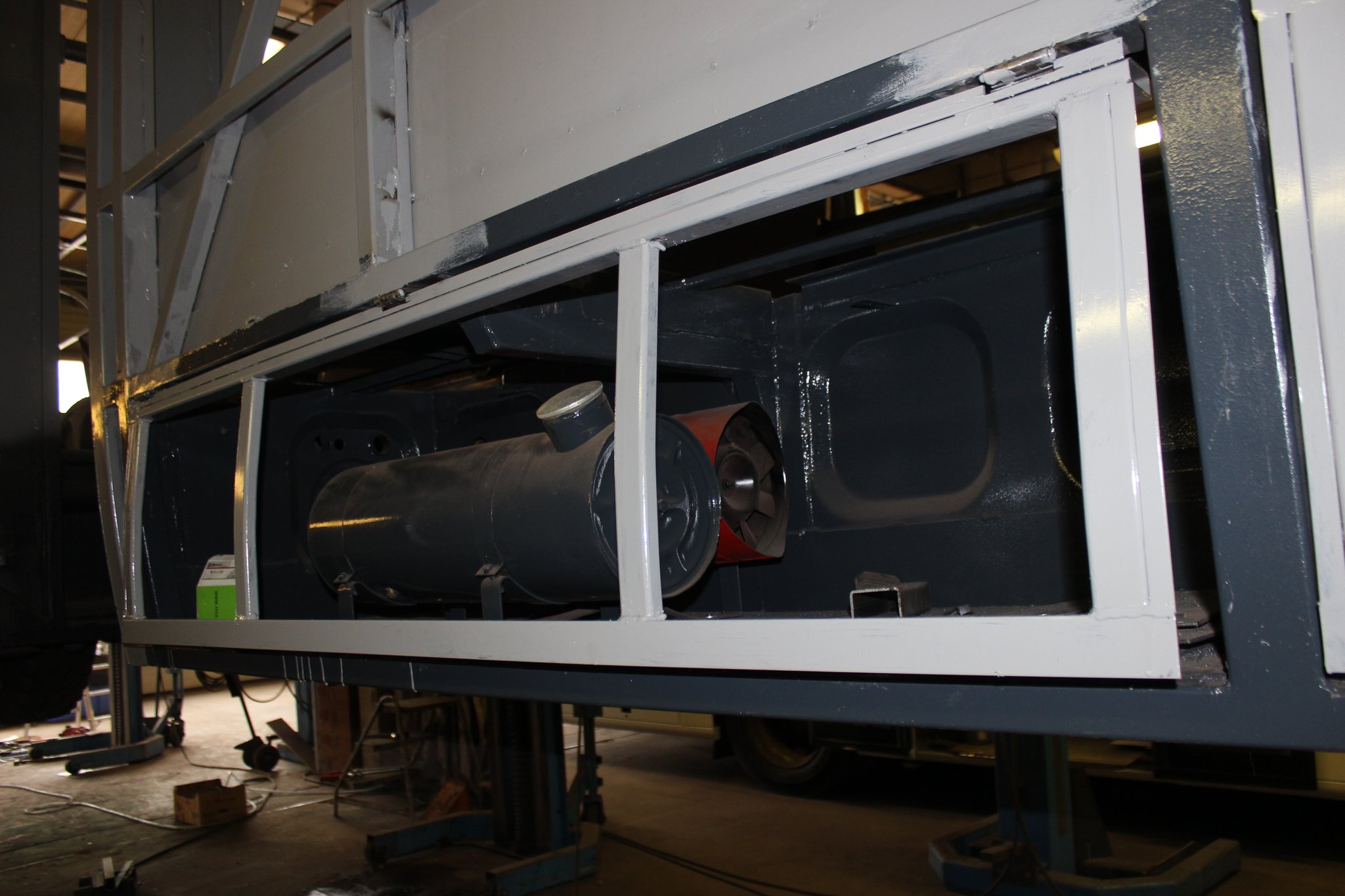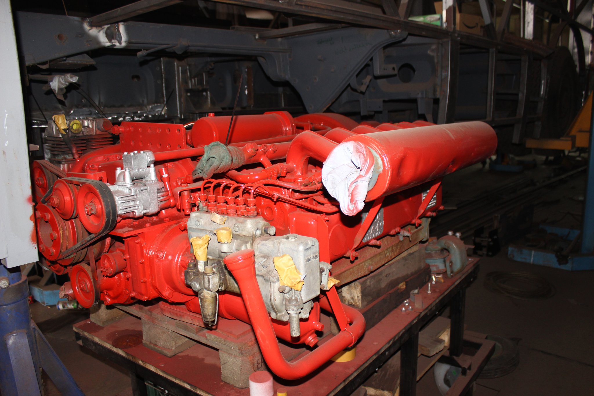 26.04.2021 - Schlosserarbeiten: Einbau Heizung u. Tank im Nachläufer, farbliche Aufarbeitung Motor u. Getriebe, Einbau Kühlkreislauf für den Lüftermotor