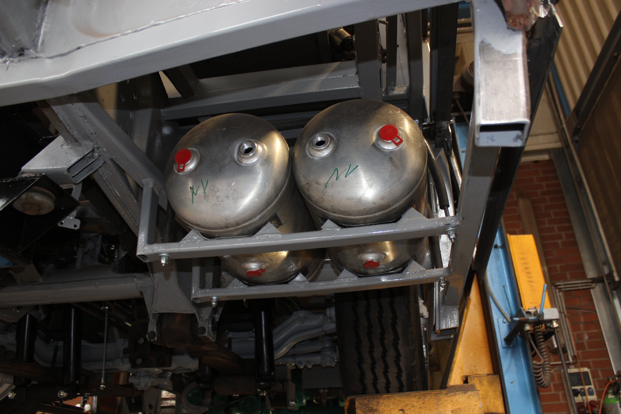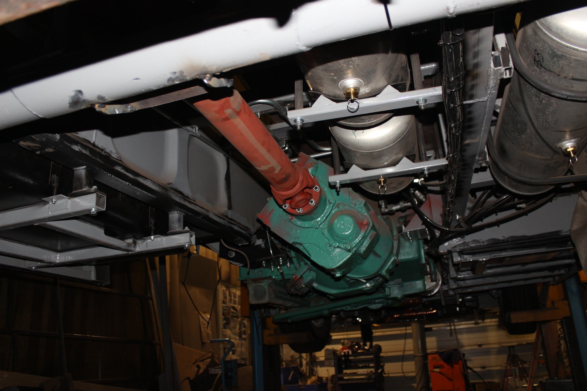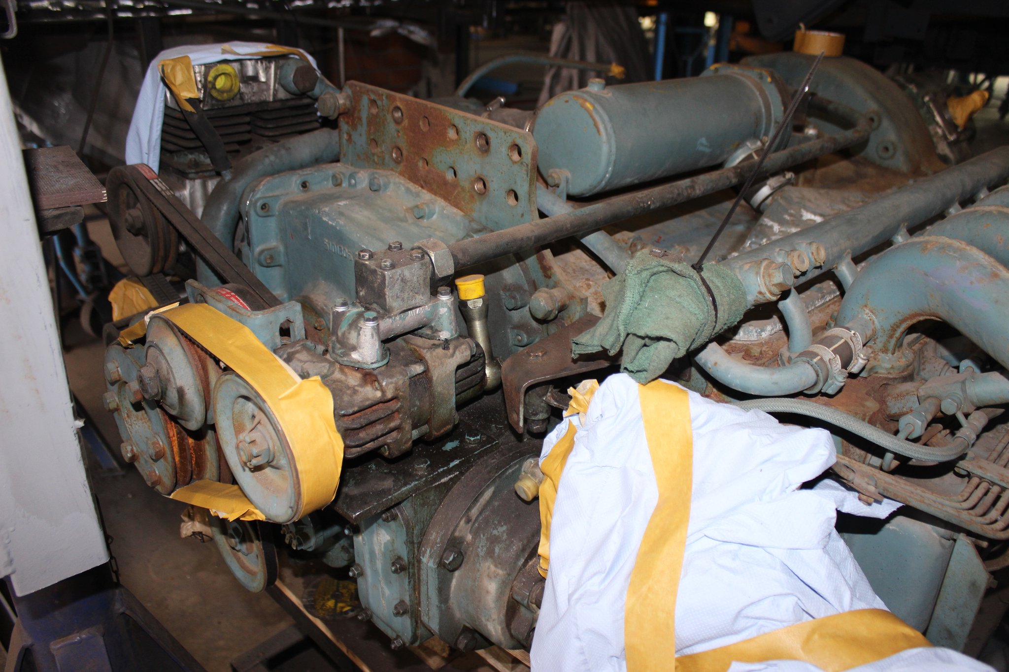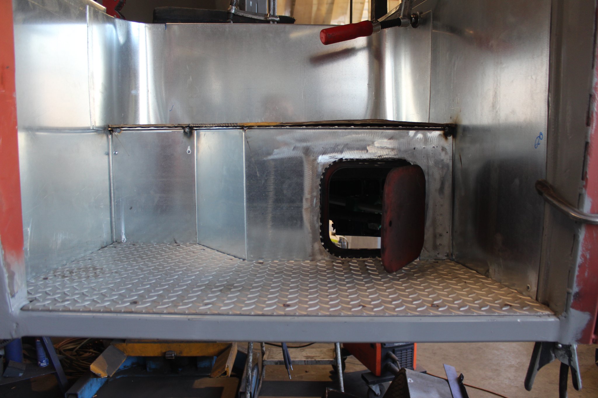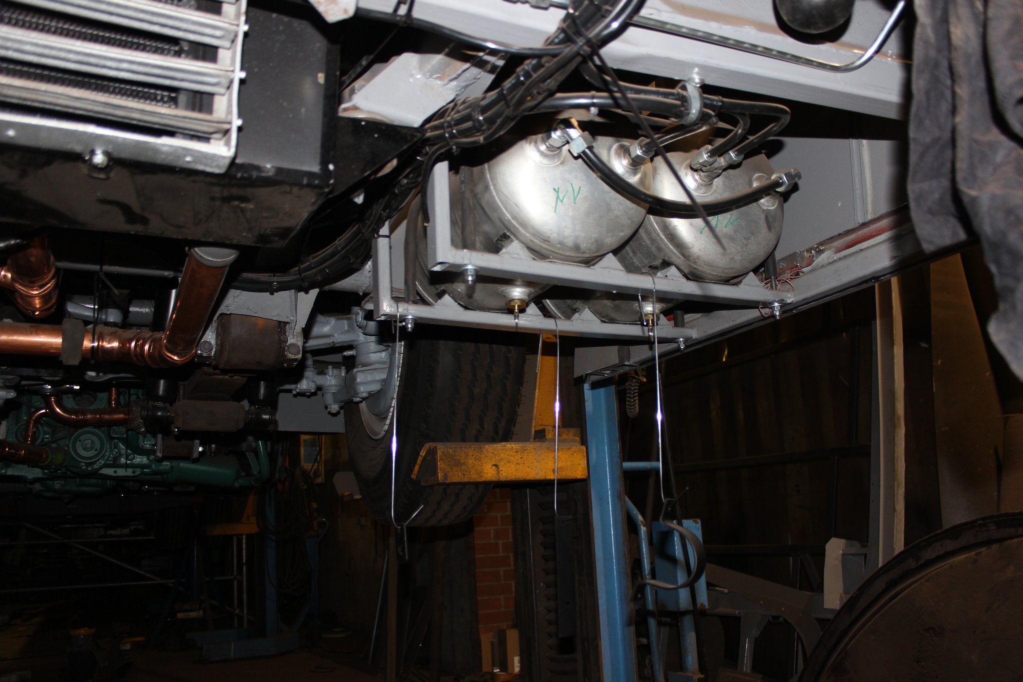 26.04.2021 - Schlosserarbeiten: Einbau Heizung u. Tank im Nachläufer, farbliche Aufarbeitung Motor u. Getriebe, Einbau Kühlkreislauf für den Lüftermotor