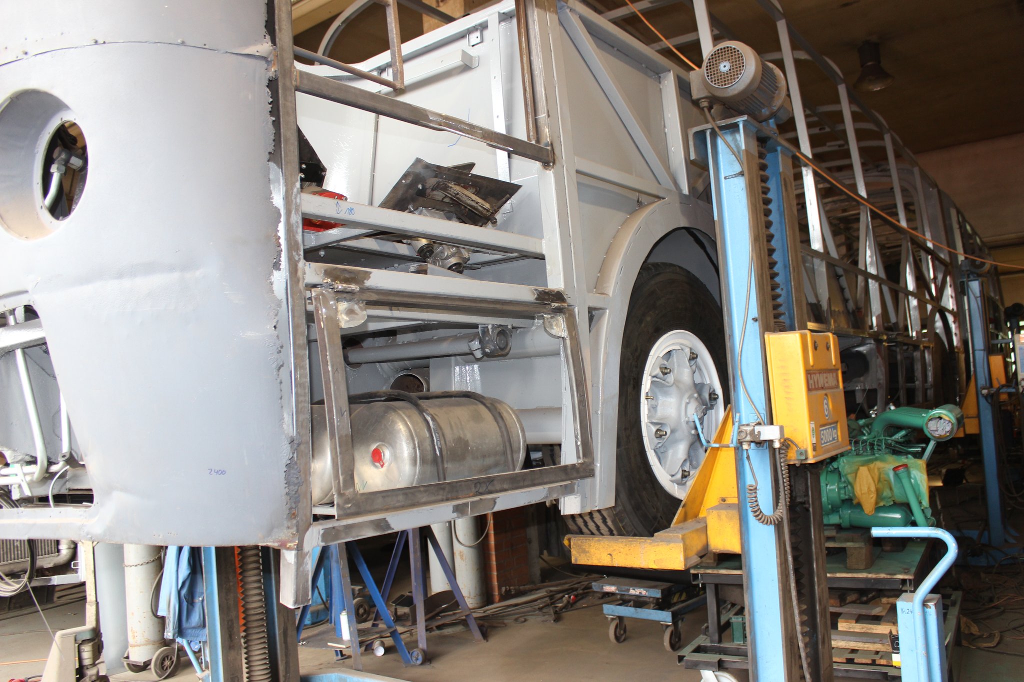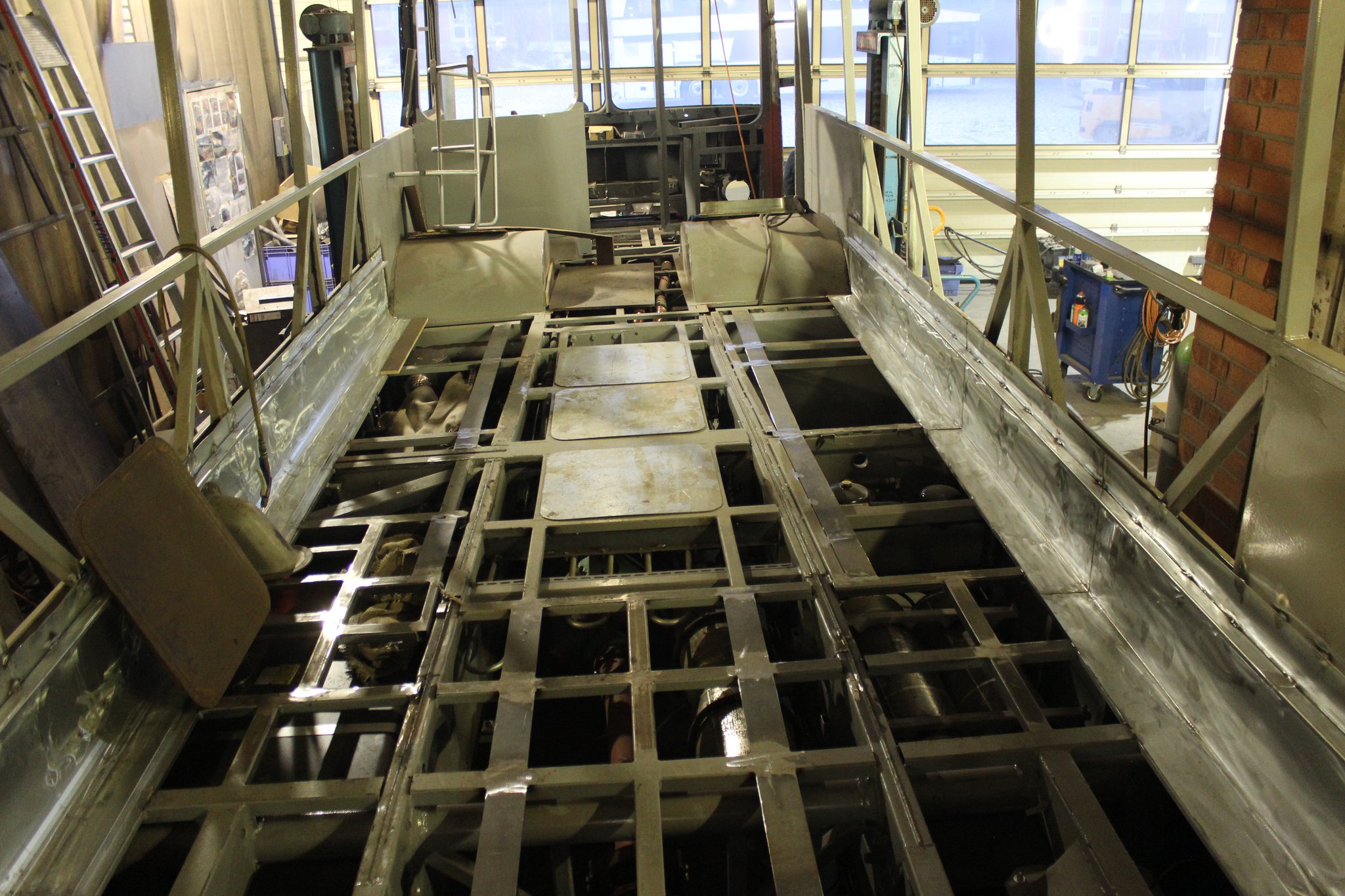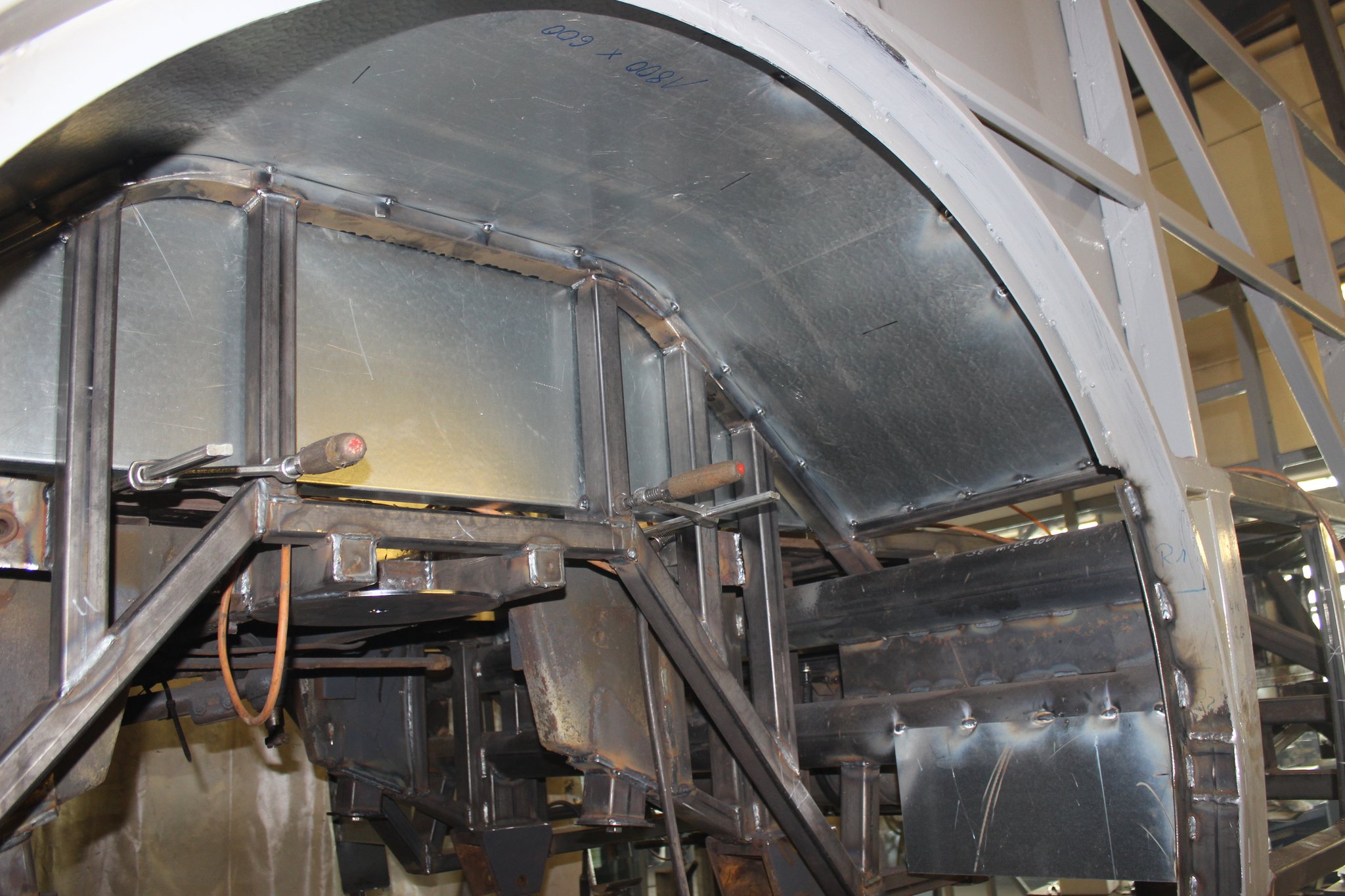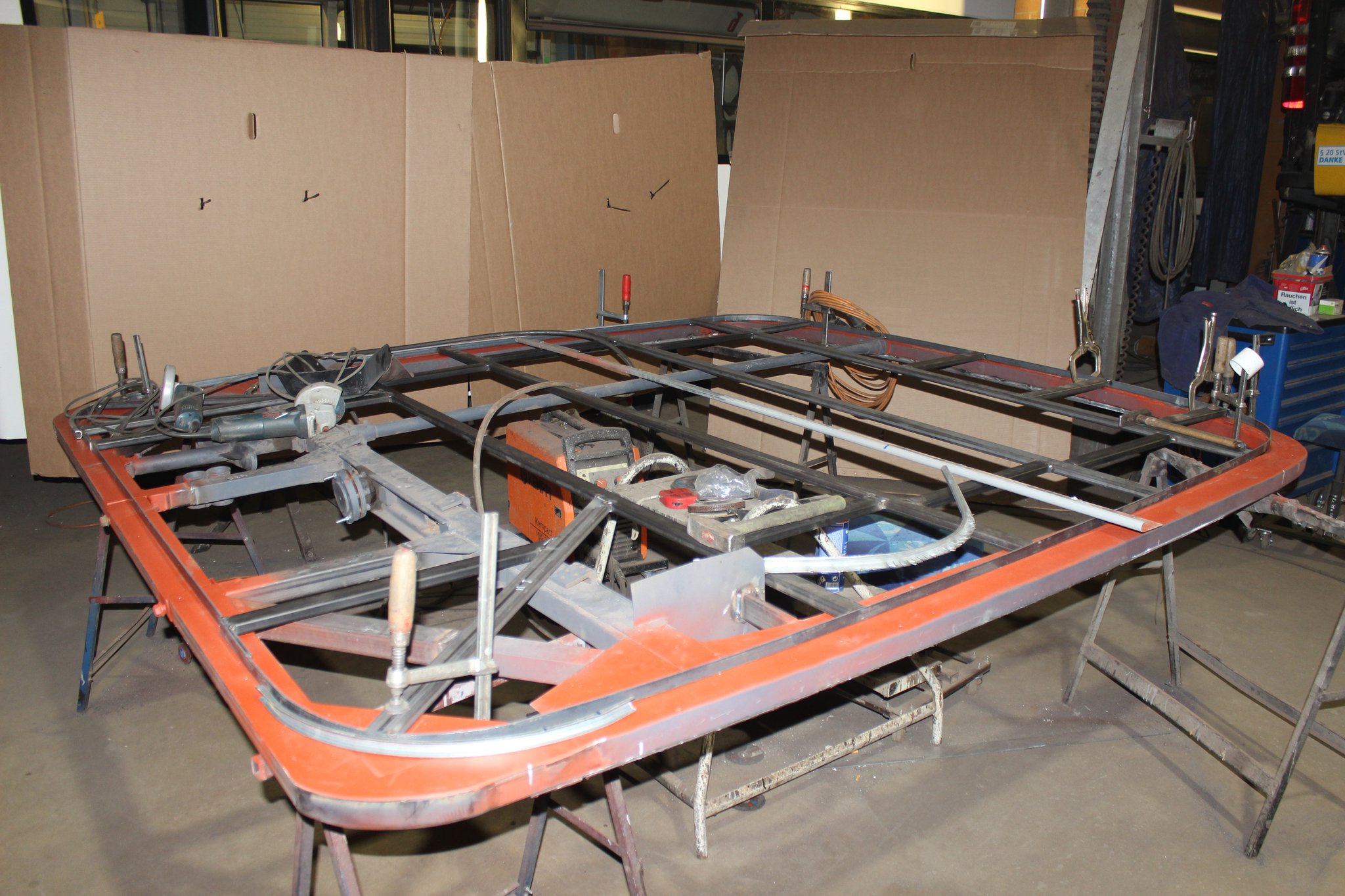 16.03.2021 - Gerippearbeiten an der A- u. C-Achse sowie Einbau Druckluftbremsanlage im Heckbereich