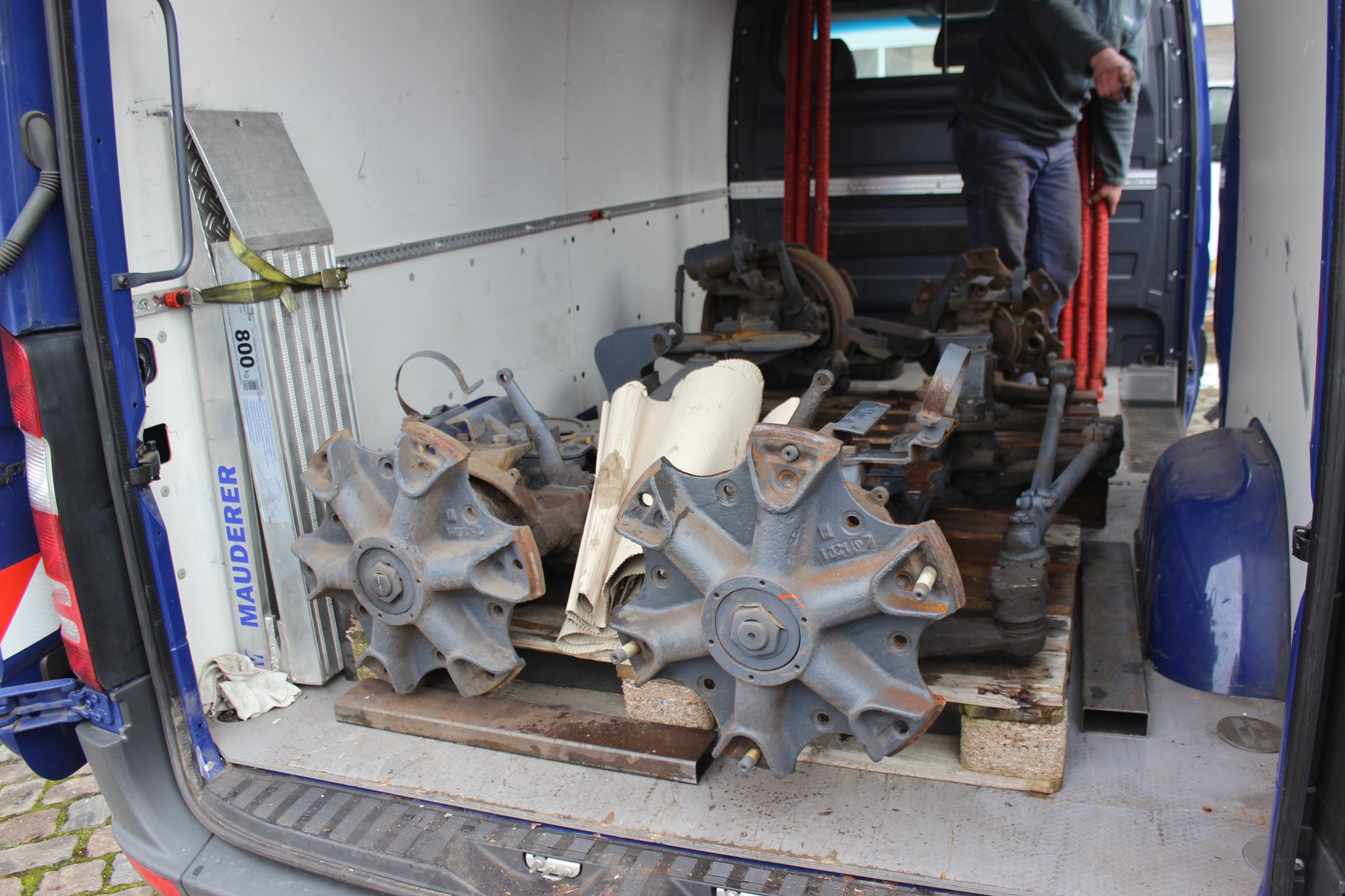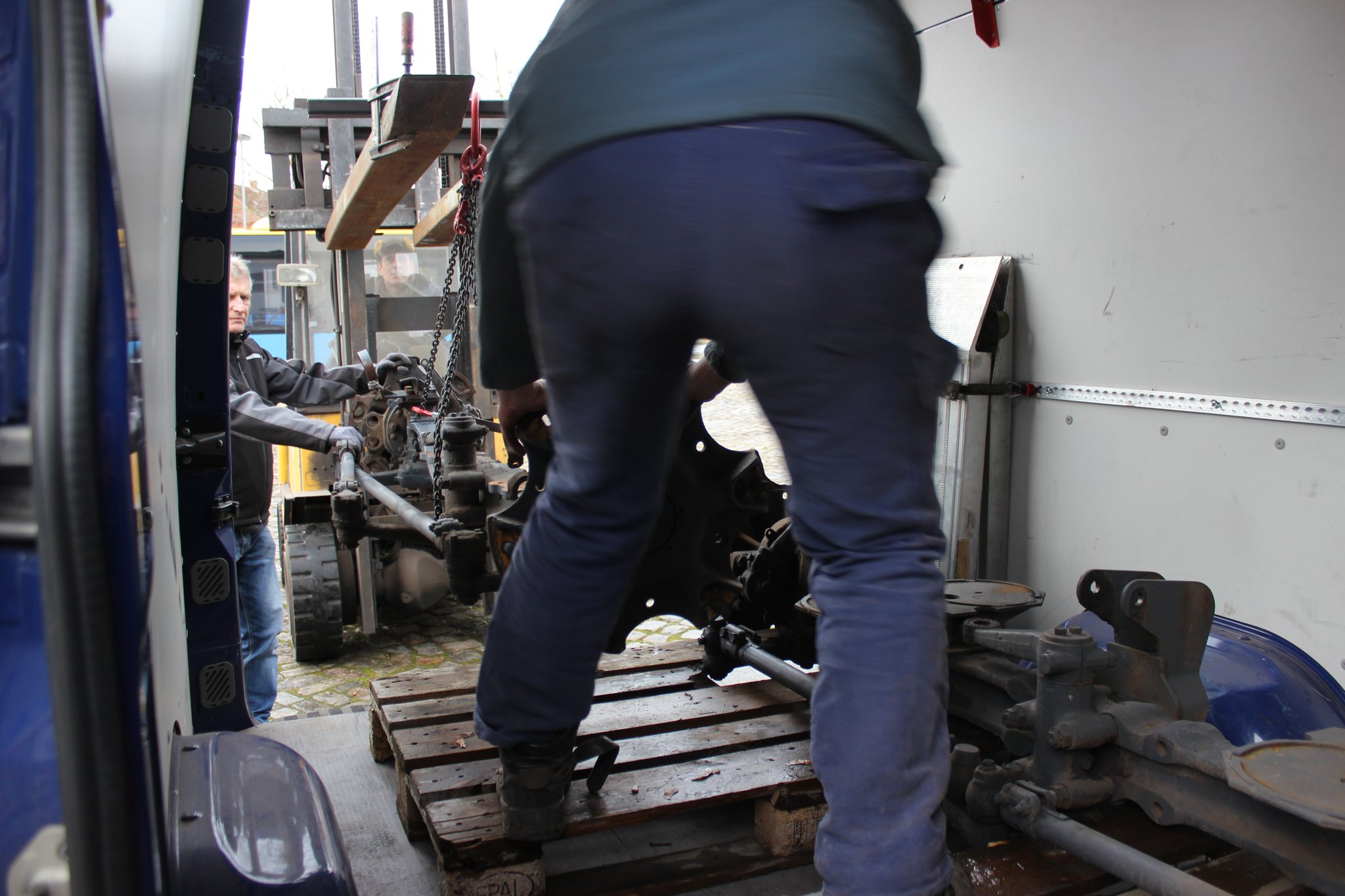 04.02.2021 - Abholung der A- u. C-Achse zur Aufarbeitung in Chemnitz sowie Anlieferung von weiteren Material