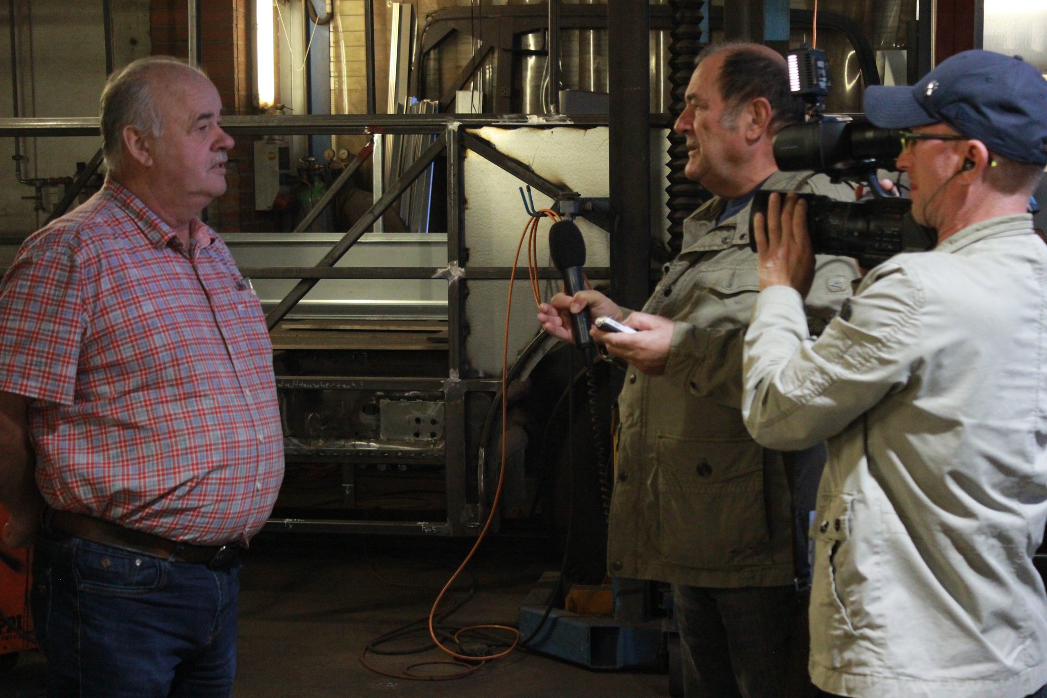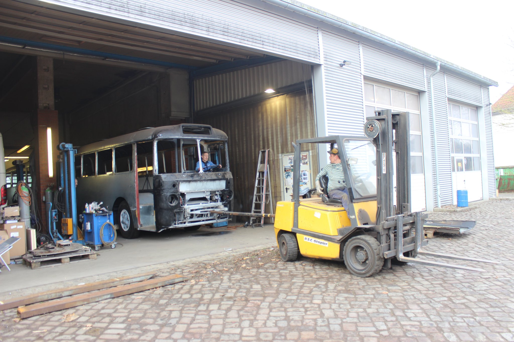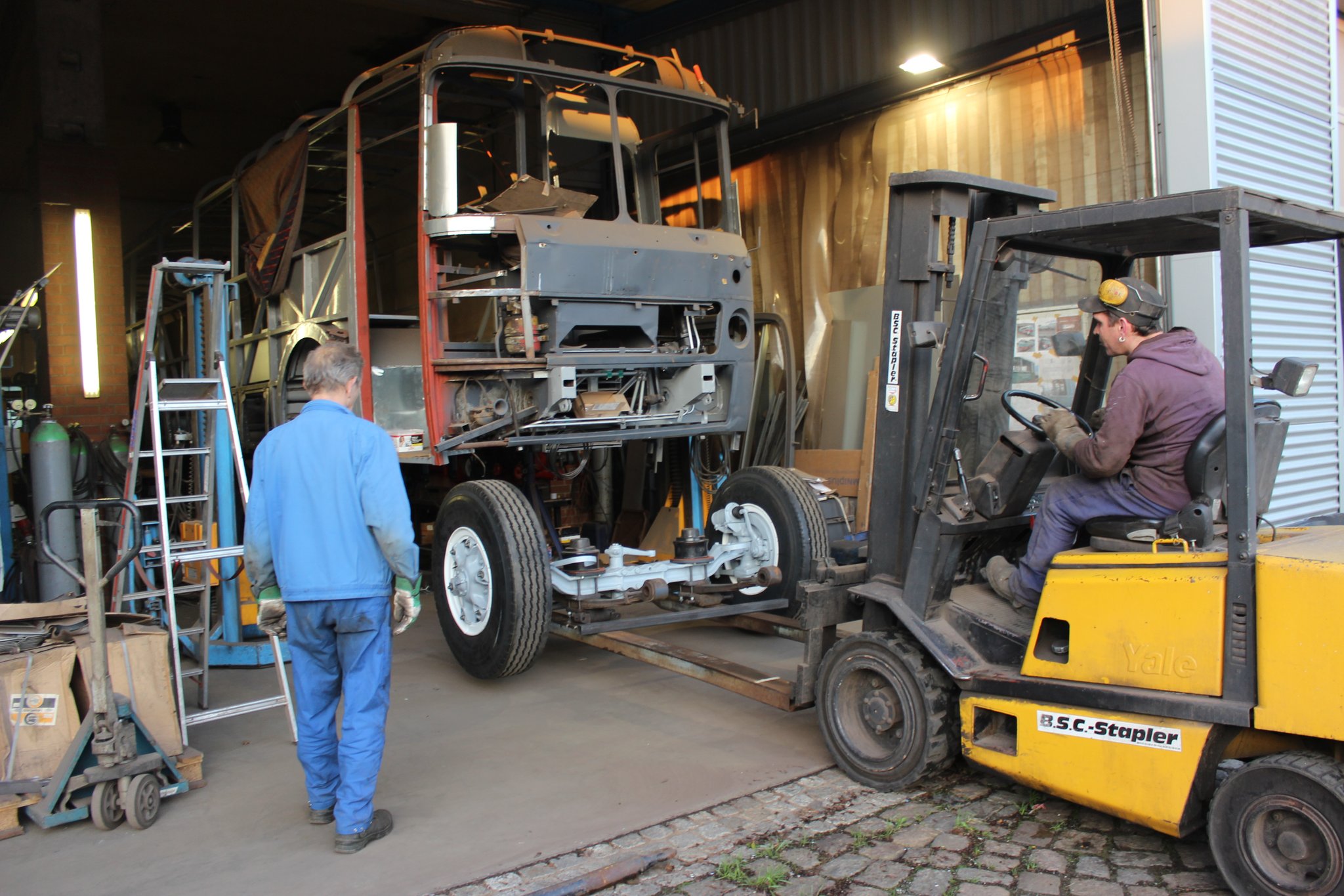 Beide bestaunten Ihren Ikarus 180.22 welcher sich seit dem 15.06.2020 bei uns in den Hallen zum Wideraufbau befindet.