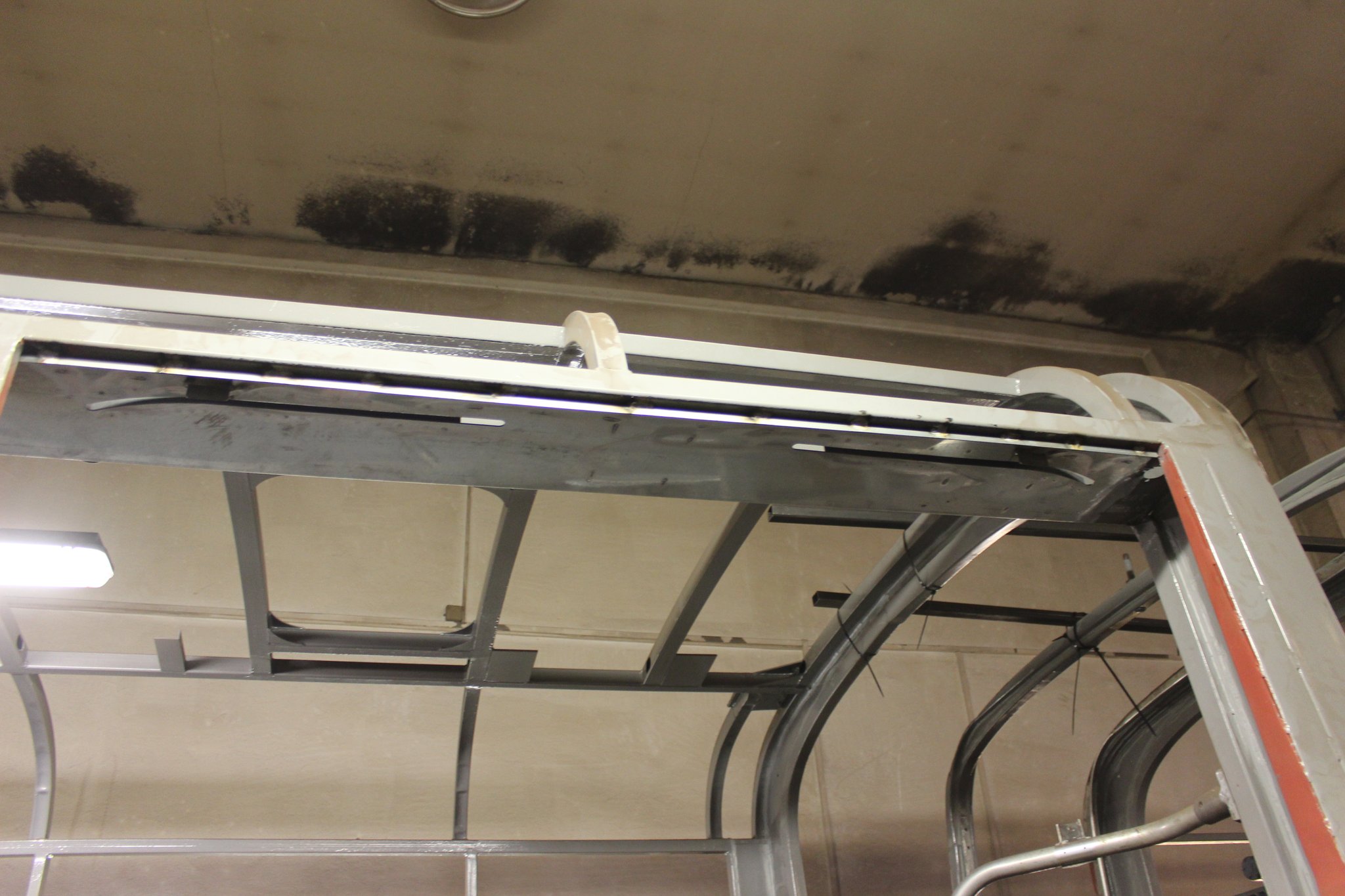Restaurierung des Türportals Tür II und des Gerippes im Bereich des Faltenbalgs. Anpassung der originalen Haltestangen sowie Erneuerung der dazugehörigen Aufnahmen - Bilder vom 20.10.2020